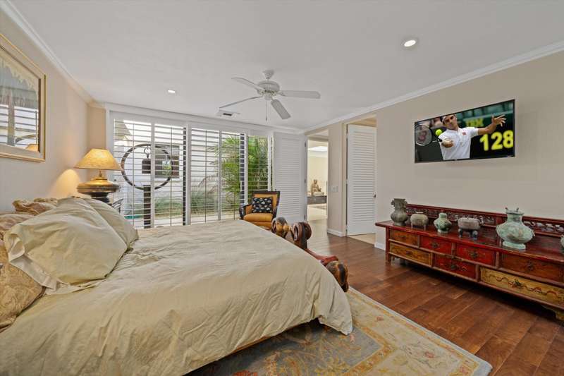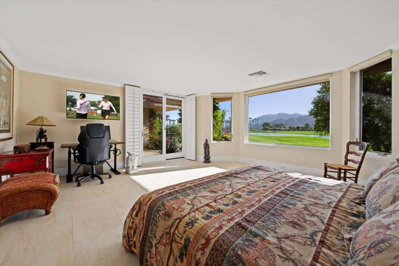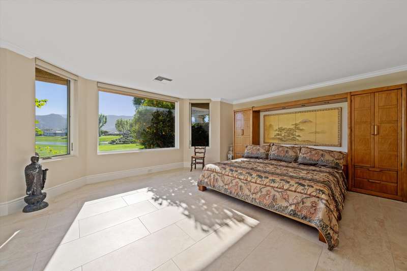 Sensational, unobstructed, south Facing, Double Fairway, lake and mountain views! On the golf course! Totally remodeled & updated! Pristine clean, light and open zen vibe with new flooring & automated shades throughout! Gorgeous remodeled gourmet open kitchen. Beautiful cathedral ceiling in the living room. The spacious master suite offers amazing views with dual bathrooms with a large walk in closet. Excellent separation of the three bedrooms suites. One bedroom is currently used as an office. Gorgeous side yard, and lots of space for entertaining. Association heated pool and spa conveniently close by! Minutes to Palm Springs, the airport and El Paseo for shopping, dining and entertainment!