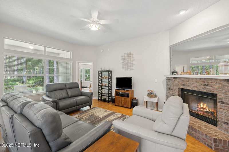 Welcome to 713 Lockwood Lane located in a small, very quiet JCP neighborhood! This charming home is nestled on a dead-end street on a premium lot that backs to peaceful preserve. A screened lanai under the roof over looks the nature preserve. This move-in ready home features a new roof in 2017, AC and appliances in 2021. The primary bath has a jetted tub, separate shower and double-sink vanity. 2 closets are also found in the primary bedroom, upgraded by design with a deep trey ceiling and a bay window. The one-story floor plan features split bedrooms for privacy, a formal dining room, and nice sized great room with brick fireplace. The tiled white kitchen has a breakfast nook that offers scenic views of the woods. All appliances stay too! And you'll enjoy the benefits of having all the amazing and fun JCP amenities close by. Great schools, shopping and restaurants are also near by! Seller has moved and can close quickly. Easy to schedule a tour and ready for new owners.