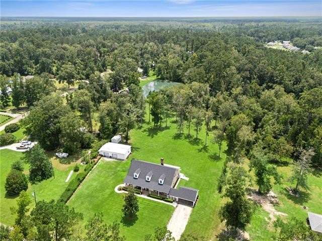 Delightful Acadian-style family home nestled on a serene, beautifully maintained 2-acre parcel—the perfect blend of charm, comfort, and room to grow. Step inside to find spacious common areas ideal for family gatherings and entertaining. Upstairs offers endless possibilities for additional bedrooms, a game room, man cave, or creative studio, with easy access to add a kitchenette—perfect for multi-generational living. A detached hobby garage provides valuable space for storage, projects, or a private workshop. Enjoy practical features like multiple floored attics for storage, RV hook-up, and a 22 kW generator for peace of mind. Outdoors, you’ll find a half bath conveniently located off the back patio, ideal for outdoor activities or guests. Located in Flood Zone X, this home offers both comfort and security in a tranquil setting.