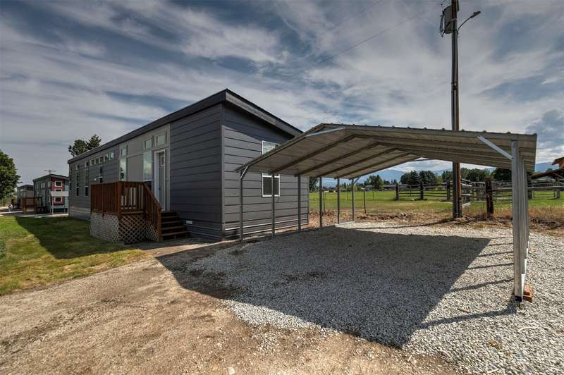 Conveniently located between Hamilton and Corvallis, you will find this 2025 model from Palm Harbor Homes with Energy Star rating. Enjoy the tranquility of rural living in this attractive, new, seven unit park overlooking Hedge Ditch. This 2 bedroom, 2 bath home has a fantastic primary suite with a large shower and walk in closet. The living room has amazing views. The huge kitchen provides plenty of counter space with a work, farm sink, new stainless appliances, and a built in hutch. There's a handy carport, too. Whether you utilize this as a seasonal getaway or a year-round residence, you will be minutes away from all the recreational activities the Bitterroot has to offer! Monthly lot rent of $595 includes: water, sewer, garbage, and lawn care! **Owner is currently offering 6 months of free lot rent with sale! Call today!