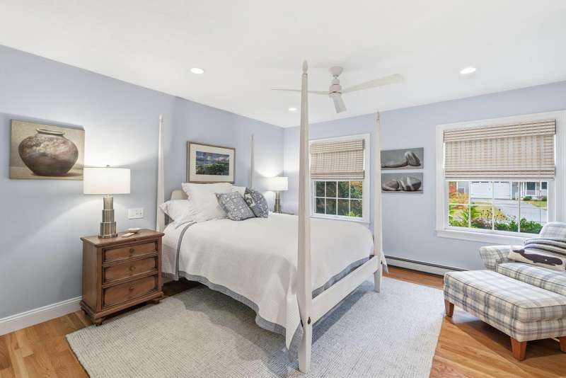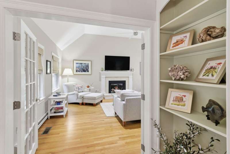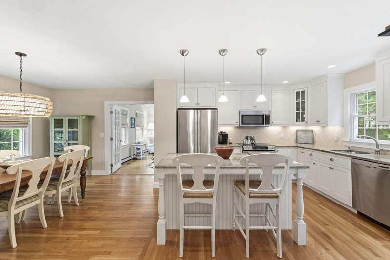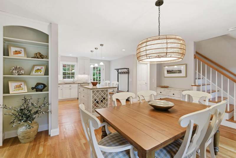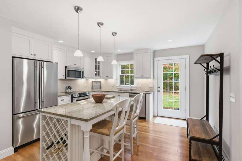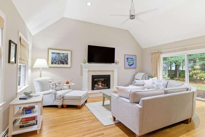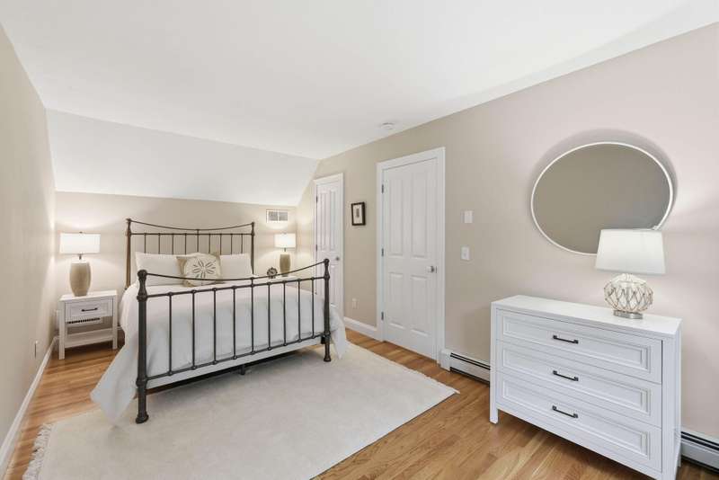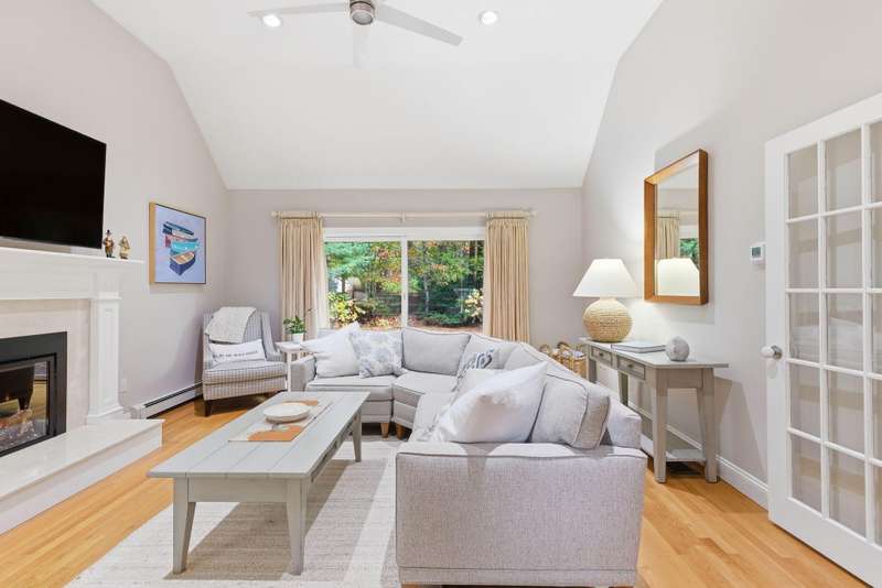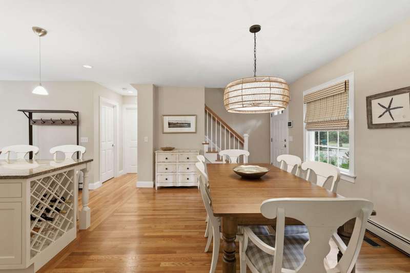 Welcome to this impeccable Cape Cod home. From the moment you arrive, you ll fall in love with the white picket fence, cobblestone walkway, & beautifully landscaped garden at this picture-perfect property. Step inside to discover a totally remodeled interior featuring gleaming hardwood floors throughout, cathedral ceilings, & ceiling fans.The inviting living room boasts a marble gas fireplace & oversized slider. The first-floor primary bedroom offers a peaceful retreat with private ensuite bath. Two additional bedrooms upstairs. The custom kitchen is a chef s delight, showcasing granite countertops, stainless appliances, & custom cabinetry with a center island & built-in wine rack. Enjoy outdoor living at its finest in the fenced backyard, featuring a mahogany deck, stone patio, new outdoor shower, piped-in gas line for BBQ, storage shed, & irrigation system. Located in a wonderful neighborhood near beach, boating, and shopping at Mashpee Commons. Furniture available separately.