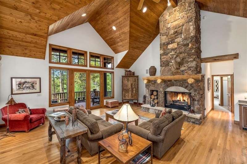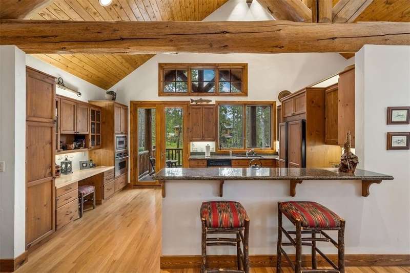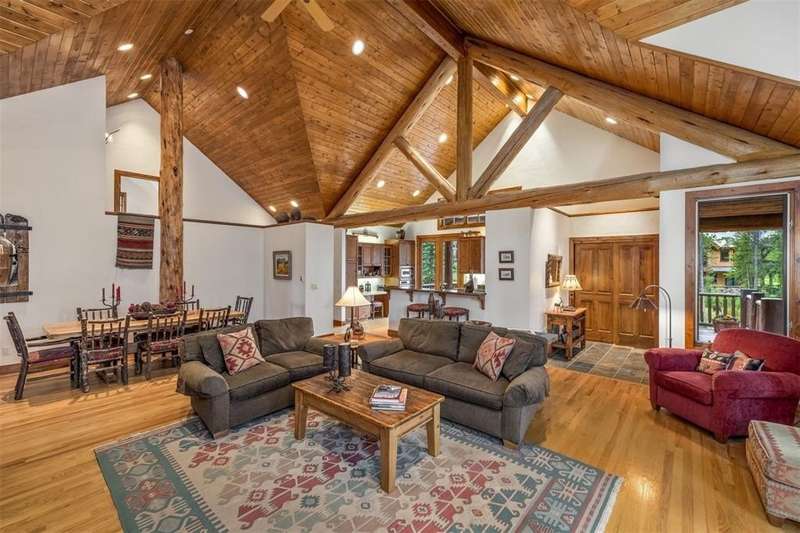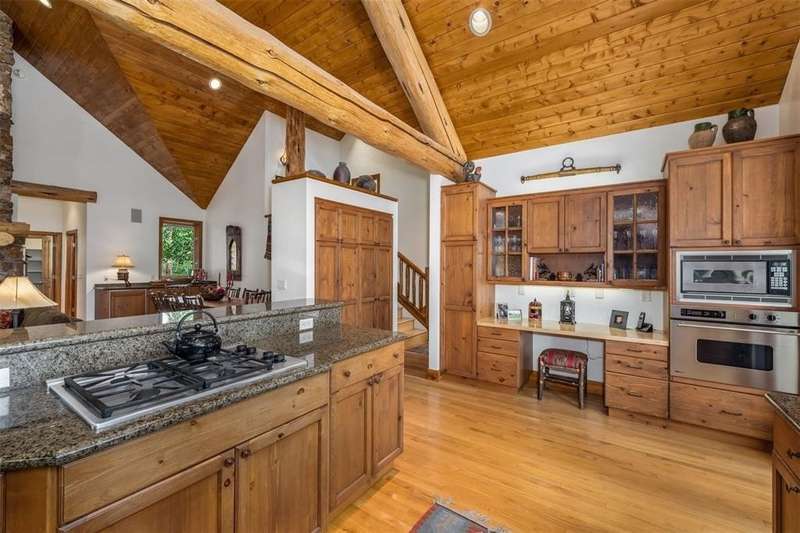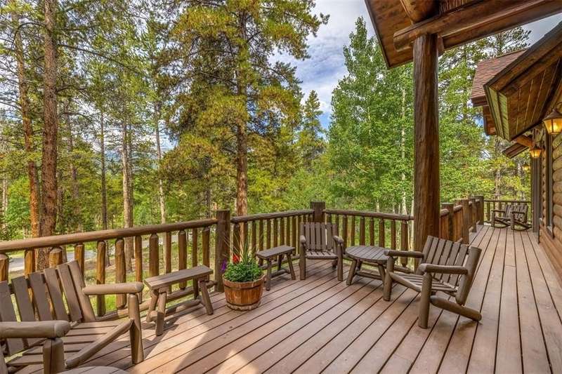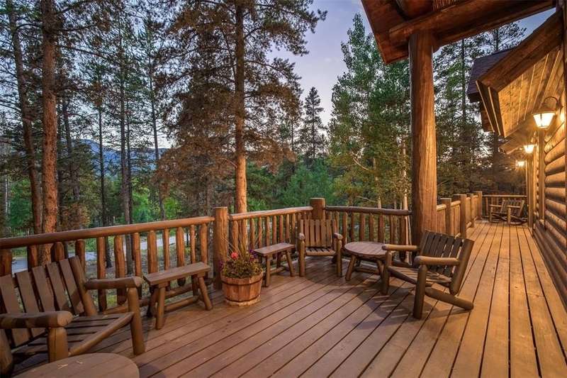 First time to market, and perched high on its own private drive in the phase one Highlands at Breckenridge, this classic home built by Guy Fleischer and designed by Janet Sutterley captures the true essence of mountain living. Perennial gardens surround the property, adding color and charm throughout the year at this secluded, quiet and convenient location. Inside, you’re welcomed by a dramatic two-story stone fireplace that anchors the main floor living area. The cozy dining space and kitchen sit just to the side, creating flow where each space feels distinct yet remains connected—perfect for conversation and gathering all in one room. With a mix of separate yet connected living spaces, this home is timeless and ideal for hosting guests. The primary suite is set off the great room on the first floor, featuring a glass fireplace that centers the space and creates a cozy nook ideal for an office or seating area. Two decks off the main level provide excellent spots for stargazing, grilling, or simply enjoying the fresh mountain air while taking in tree-protected views of the Breckenridge ski area. An expansive family suite encompasses the entire upper level, which provides your guests with plenty of privacy and comfort during their stay. The lower level offers two additional bedrooms and a versatile flex space, perfect for use as a bunk room or playroom. These spaces surround a family room with a gas fireplace and wet bar, ideal for relaxing or socializing. A walkout leads to a patio with a hot tub, extending the living space outdoors. Natural light and smart design flow throughout, creating the perfect setting to enjoy cozy, memorable moments in the mountains. New boiler installed in 2023.