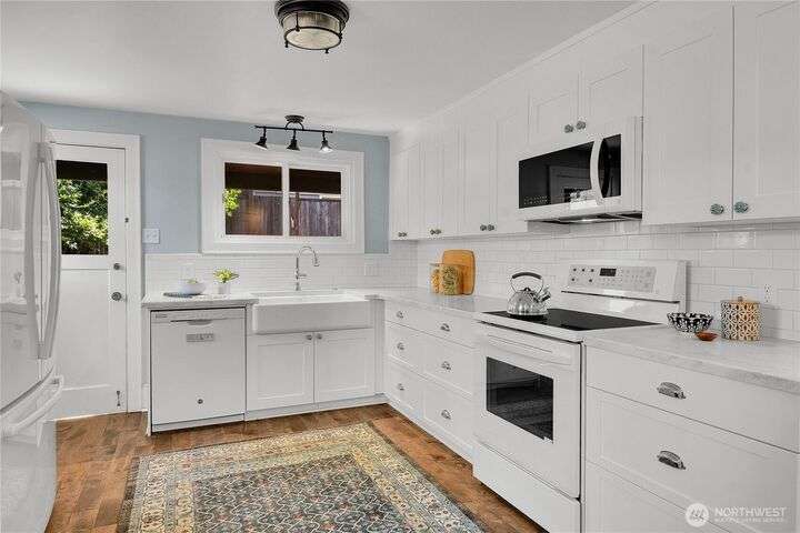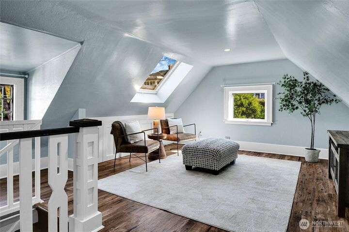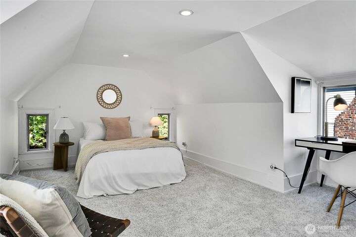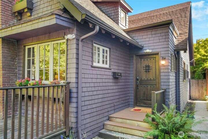 Experience the charm of this unique turn-of-the-century shingle-style home near Volunteer Park. Step onto a tree-lined street aglow with Edison lights and hear the daily chimes of St. Joe’s bell tower. Enhanced in systems, structure, and style, it showcases period details including an extraordinary brick fireplace, original woodwork, wood floors, box-beam ceilings, and a gracious living room with French doors to a private deck. A formal dining room with curved, barrel-vaulted ceiling flows to the remodeled chef’s kitchen with access to a picturesque backyard and sunken patio. Main level offers a versatile den/bedrm, ¾ bath with walk in shower, and large bedroom; upstairs features two bedrooms, full bath, and a family room.