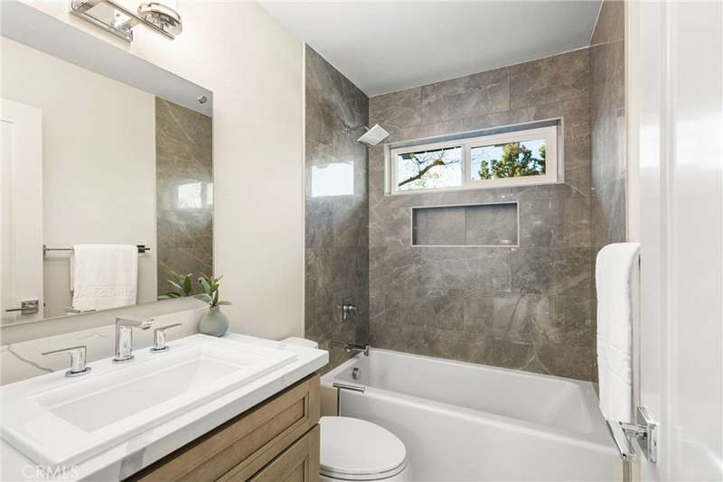 This spectacular home presents a rare opportunity to own one of the most stylish and well-appointed residences in Irvine’s premier Woodbridge community. Nothing else compares at this price point—luxury, location, and lifestyle converge in one irresistible package. Completely reimagined from top to bottom, this fully renovated 4-bedroom, 2.5-bathroom home showcases a sleek, modern design with thoughtful upgrades and premium finishes throughout. Step inside to discover brand-new wide-plank hardwood flooring, fresh designer paint, and energy-efficient dual-pane windows—the entire home was crafted with impeccable attention to detail, exuding contemporary sophistication and quality craftsmanship. The heart of the home is a gourmet chef’s kitchen that blends beauty and function. Featuring custom thin shaker cabinetry, quartz countertops, and high-end stainless steel appliances, this dream kitchen opens to a spacious family room, perfect for hosting, entertaining, or simply enjoying the day-to-day. Downstairs, you'll find formal living and dining rooms, a private main-floor bedroom ideal for guests or a home office, a stylish powder room, and a dedicated laundry room for convenience. Up the striking staircase, an open-concept loft overlooks the living area and offers a perfect flex space for a playroom, second office, or reading nook. The primary suite is a private sanctuary, flooded with natural light and complete with two custom closets and a spa-like ensuite bathroom. Two additional large bedrooms share an updated full bath, making this home as practical as it is beautiful. Step outside to a private backyard oasis with a large patio and lush lawn—ideal for alfresco dining, entertaining, or relaxing under the sun. Living in Woodbridge means access to an extraordinary lifestyle: two scenic lakes with beach lagoons, over 20 pools, tennis and pickleball courts, walking trails, parks, and community events—all part of a master-planned community renowned for its amenities and sense of connection. This home has been drastically reduced and offers luxury living at a price rarely seen in Woodbridge. Act quickly—this is your chance to secure an exceptional home in one of Irvine’s most coveted neighborhoods!