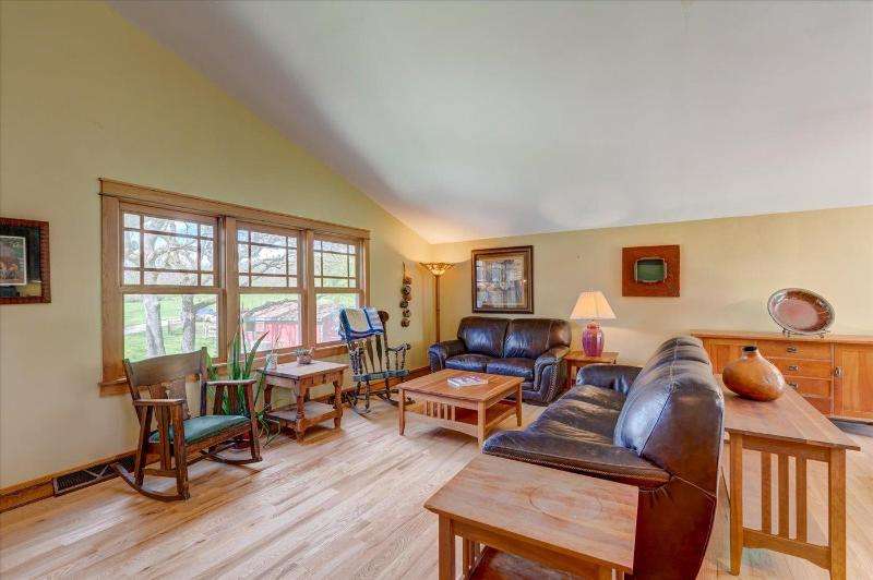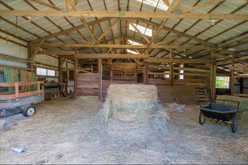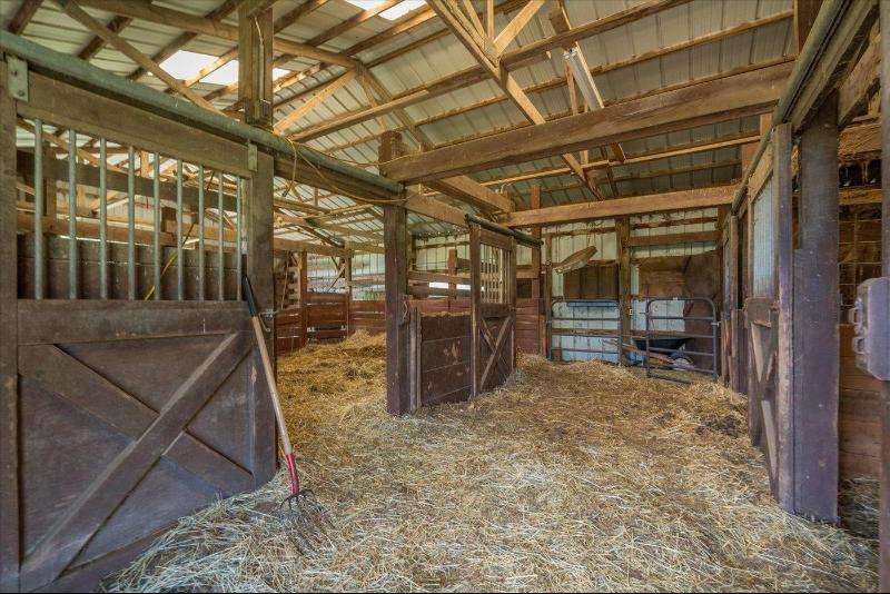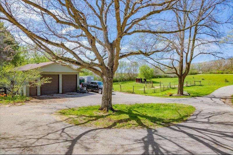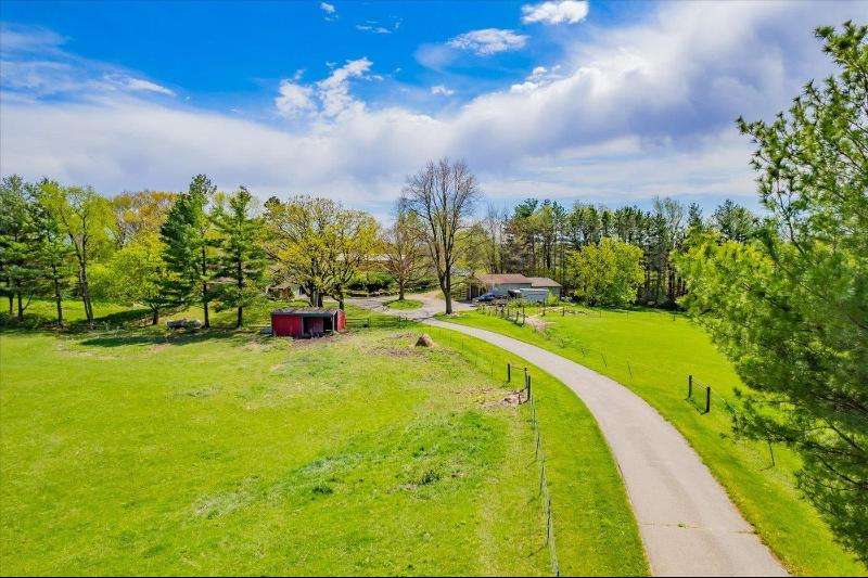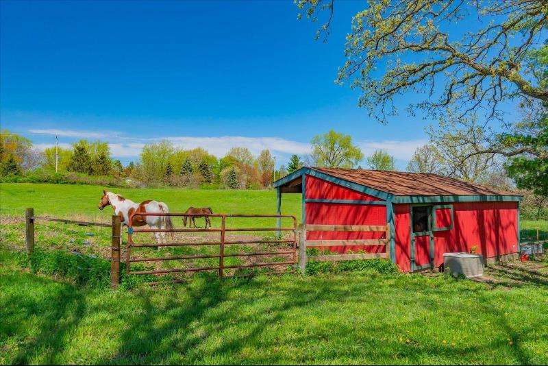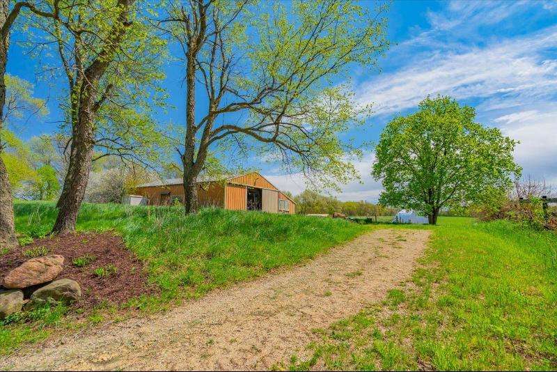 A slice of heaven, only 12 minutes from the beltline! Check out this amazing 24.5 acre horse farmette. House has a brand new roof, new hardwood floors, new stove, refrigerator and water heater. Newer dishwasher, washer, dryer and siding. Updated kitchen and baths. Other room is multi purpose, sunny and bright currently being used as office, exercise space and loom weaving. Outside buildings include a detached 26x28 garage with awesome workshop with heated floors. 5 box stall barn with tack room and hay storage, 3 fenced paddocks with water. Acreage is gorgeous with abundant trees and gardens plus a charming water feature. Backyard has a 3/4 acre fenced area. UHP Elite included.