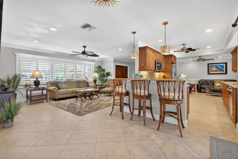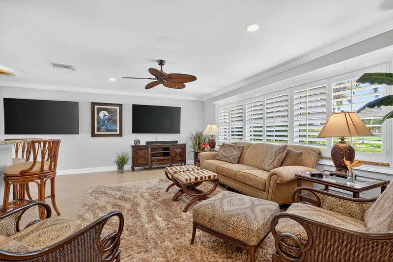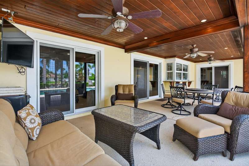 A Waterfront Oasis! 4 bed 3 bath waterfront pool home on one of the most desirable streets in the VIllage of NPB! Privately tucked away on a cul-de-sac street of multi-million dollar waterfront homes, this beautiful home is being offered fully furnished and turnkey! Enjoy the coastal breezes and morning sunrises under the expansive covered lanai or relaxing by the pool! The open floor plan flows seamlessly outside, perfect for entertaining! The home features 4 large screen TVs, gas grill, whole house generator, oversized 2 car garage and a large circular driveway. Master bed (King) 3 Guest beds(Queens) The Village of NPB is a golf cart friendly neighborhood. Landlord is flexible in accommodating a long term lease unfurnished. Annual/Seasonal (6mos+day) Boat slip is NOT available.