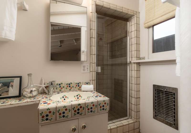 Outside, mission tile roofs and carefully matched plaster honor the original fabric of the home. Set back from the street, the residence enjoys a sheltered entry and guest parking (formerly four bays; one later converted to a laundry room). A separate studio with a private bath offers flexible use as a guest suite, office, or staff room.
