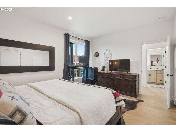 Lovely corner VIEW townhome designed by Jordan Iverson Signature Homes. Located in the heart of Eugene - steps from 5th St. Market, Hult Center, Willamette River, at the base of Skinner's Butte with many local eateries and breweries within walking distance! Beautiful townhome with two generously sized bedrooms, two bath offering luxury and detail throughout! The primary suite has a spa-like bathroom. Thoughtfully designed kitchen has a coffee bar, stunning island and all the bells and whistles. Just perfect for entertaining inside and on the deck. The sunset views are spectacular at this dreamy townhome. Move-in ready with low maintenance landscape.