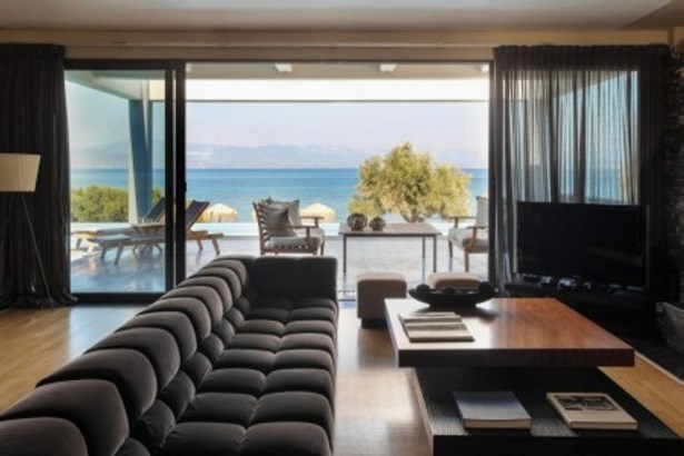 Seafront Villa near Athens is an exceptional seaside property that epitomizes luxury and tranquility along the coast of Evia. With its private beach and seamless blend of natural beauty and modern sophistication, this villa offers an exclusive Mediterranean retreat only 70 minutes from Athens Airport and a mere 65 minutes from downtown Athens. Located near the ancient port town of Anthedon, the villa’s proximity to Chalkida provides residents with convenient access to a bustling city, just 15 km away.