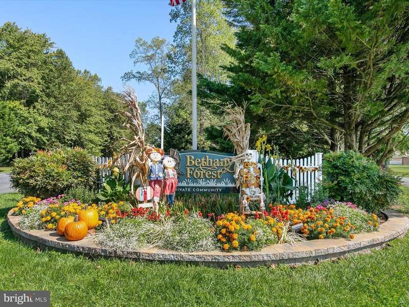 Welcome to 34 Bethany Forest, a charming home nestled on a spacious lot with mature trees. A covered front porch creates a welcoming entry, while the two-bay oversized garage offers plenty of room for vehicles, storage, and a convenient side door leading to the yard. The property also features an irrigation system to keep the grounds beautifully maintained. Inside, the foyer opens to main living areas, showcasing new luxury vinyl plank flooring complemented by fresh carpeting throughout the rest of the home. A formal dining room provides the perfect space for hosting larger gatherings. The living room is warm and inviting with a gas fireplace, vaulted ceilings, and skylights that bathe the space in natural light. The eat-in kitchen is equipped with a gas stove, pantry, display cabinetry, crisp white cabinets, and matching white appliances. A charming breakfast nook with a bump-out overlooks the backyard and offers peaceful nature views. From here, an atrium door leads out to a spacious deck, extending the living space outdoors. Just off the kitchen, the family room serves as an additional gathering area, featuring high vaulted ceilings and sliding glass doors that open to the deck. The primary suite offers a private retreat complete with a dual-sink vanity, stall shower, relaxing jetted soaking tub, and a generous walk-in closet. A laundry room with hookups and attic access adds everyday convenience. Two additional bedrooms, one with direct access to the deck, share a full hall bath on the opposite side of the home. Residents of Bethany Forest enjoy desirable community amenities, including a pool, tennis courts, and a pond, all within a tranquil setting close to coastal conveniences.