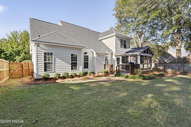 This 4-bedroom, 2.5-bath home offers the space and style you've been looking for. The main level features gleaming hardwood floors, updated lighting, and an open floor plan that connects the great room, kitchen, and dining areas. The great room includes vaulted ceilings, a gas-log fireplace, and large windows overlooking the fenced-in backyard.The kitchen is perfect for entertaining, featuring quartz countertops, stainless steel appliances, and ample cabinet space. The main-level primary suite includes a spacious walk-in closet and ensuite bath with a garden tub and separate shower.Upstairs are three roomy bedrooms, including an oversized space ideal for a home office, gym, or playroom. Enjoy outdoor living on the screened porch overlooking the private, fenced yard.Providence offers sidewalks, walking trail , playground, tennis courts, a clubhouse, and a community pool--all the amenities without the maintenance!