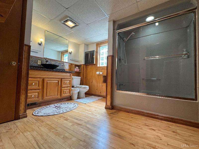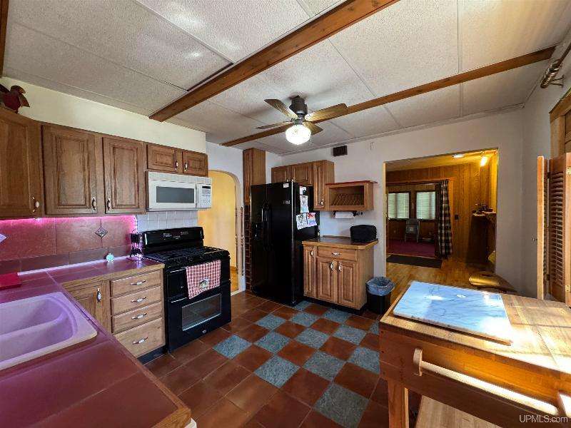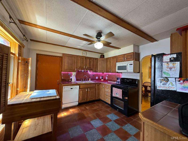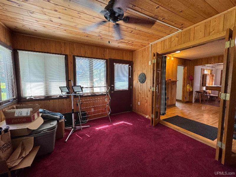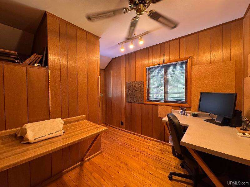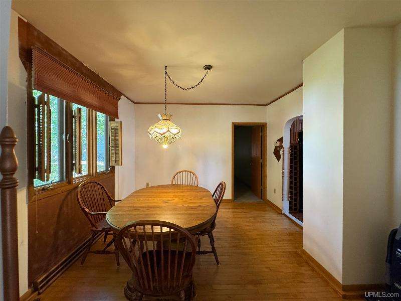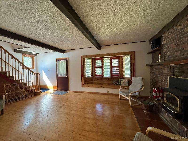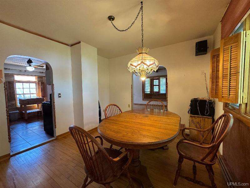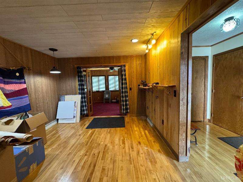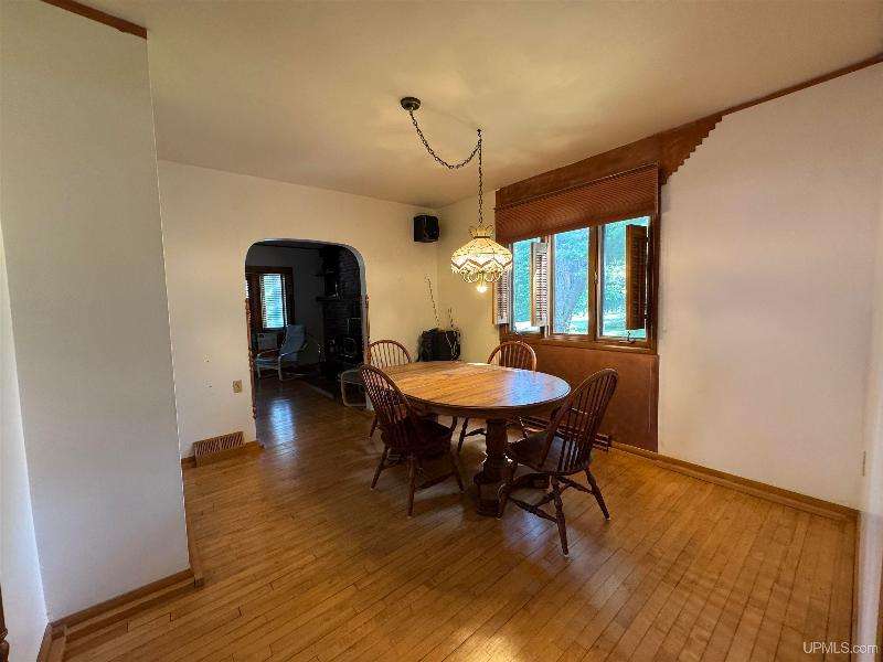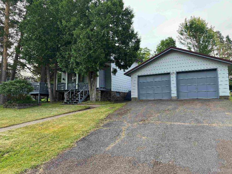 Spacious Layout, Custom Features & 2 garages in Montreal! Welcome to this well maintained 4-bedroom, 2.5-bath home nestled on a lot in the quaint small town of Montreal. This property offers an ideal blend of comfort, space, and functionality with unique features throughout. The main floor boasts a generous layout, including a spacious living room with a cozy fireplace and a formal dining room perfect for hosting family and guests. The main-floor master suite features a full bath and double closets with patio doors to the sunroom. The main-floor laundry is shared with a half bath, making it a practical and efficient for everyday living. Work from home or relax in the inviting den, which opens through to a four-season sunroom clad in T&G knotty pine--an ideal retreat in every season. On the upper level you will find the additional bedrooms, one of which was most recently used as an office and a large full bath. The home is also equipped with a wired stereo system, adding an extra touch of entertainment throughout. Outside you will find a large, custom-built deck--perfect for grilling, gatherings, or simply enjoying the peaceful surroundings. Mature trees provide natural privacy and shade, enhancing the beauty and serenity of the spacious lot. A durable metal roof ensures low-maintenance, long-lasting protection, giving you peace of mind. For the hobbyist or anyone needing extra storage or workspace, this property includes both a detached 2-car garage and an additional 3-car garage accessible from the alley. The full basement has an electric sauna. Outdoor enthusiasts will love the easy access to nearby snowmobile and UTV trails, cross country trails and Whitecap Mtn making this home an excellent base for year-round adventure. Don't miss your chance to own this home in a peaceful setting just minutes from downtown Hurley and outdoor recreation.