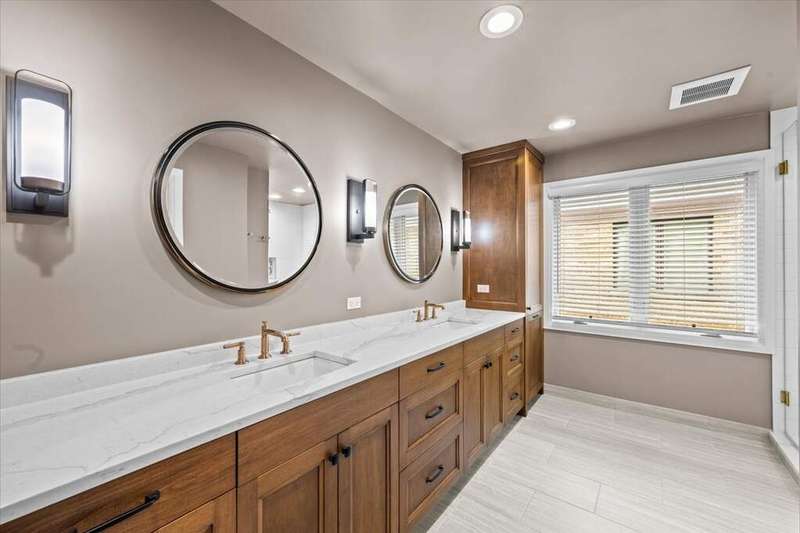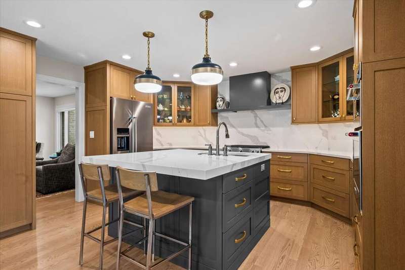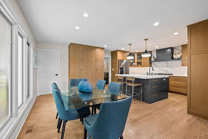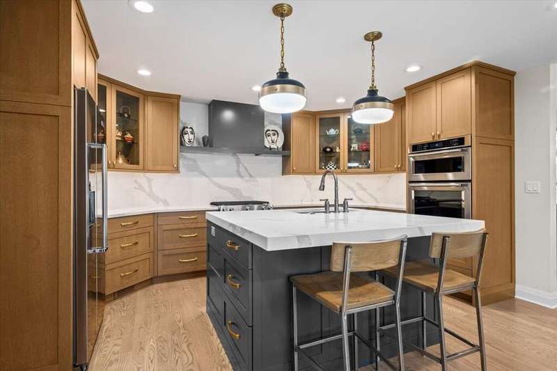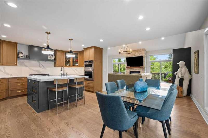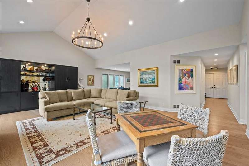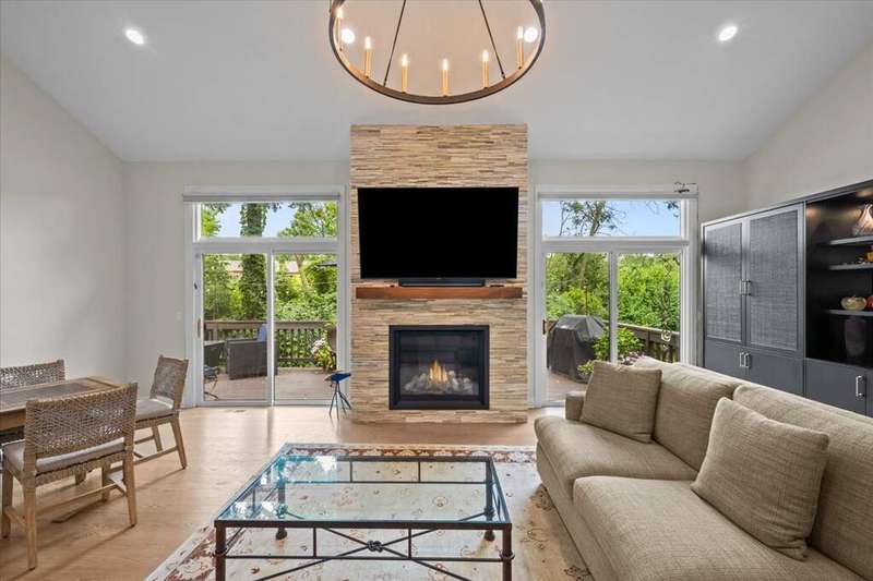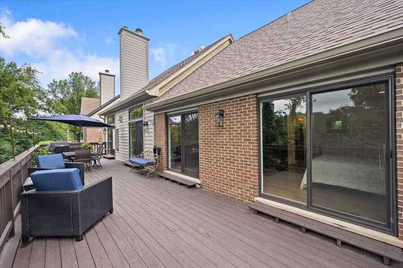 Gorgeous Updated Ranch in the Villas of Highland Park. This beautifully renovated 3-bedroom, 2-bath ranch offers maintenance-free living in one of Highland Park's most desirable communities. Completely updated in 2020, the home features brand-new oak hardwood floors and stunning custom cabinetry throughout. Upon entry, you're welcomed by a cozy den with a custom shelving and large, sun-filled windows. The private primary suite impresses with cathedral ceilings, plantation shutters, and a luxury spa-like bathroom boasting a large walk-in shower, double vanities, and abundant custom storage in addition to the large walk in closet. Make your way to the bright, open great room which boasts cathedral ceilings and a stunning gas fireplace, dining area and loads of windows. From here, step out on to the oversized deck and enjoy tranquil views of the lush greenery-your own private retreat. Adjacent to the great room, is a chef's dream kitchen with striking custom cabinetry, quartz countertops, and high-end stainless steel appliances and is completed with an eat in area. A fabulous laundry room off the two car attached garage completes this wing of the home. Two additional bedrooms, each with deck access, share a beautifully appointed hall bath. The spacious finished basement provides the perfect rec room or flex space to suit your needs. Move-in ready and meticulously maintained, this exceptional home offers the perfect blend of comfort, elegance, and convenience. Showings start Tuesday 8/26
