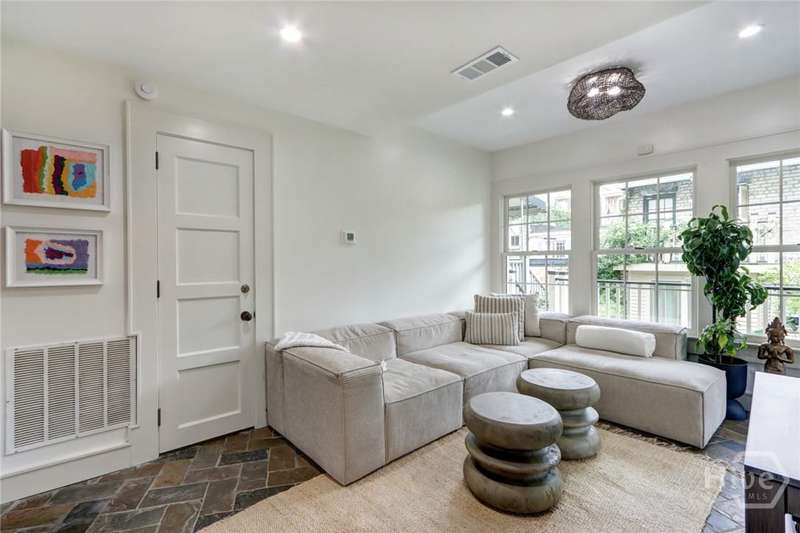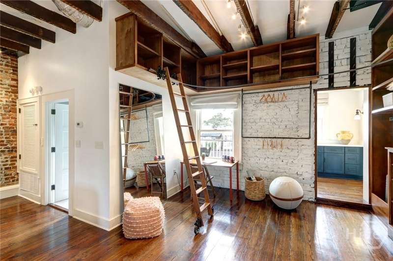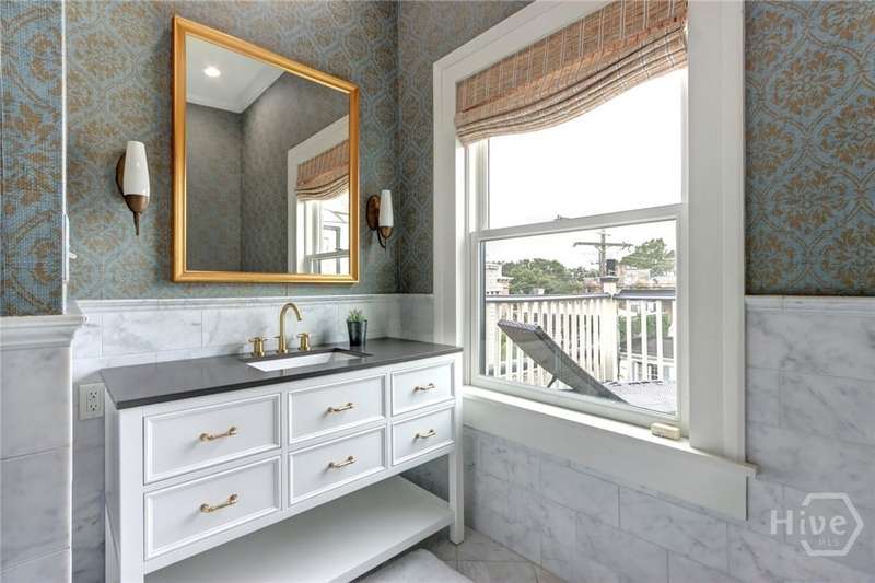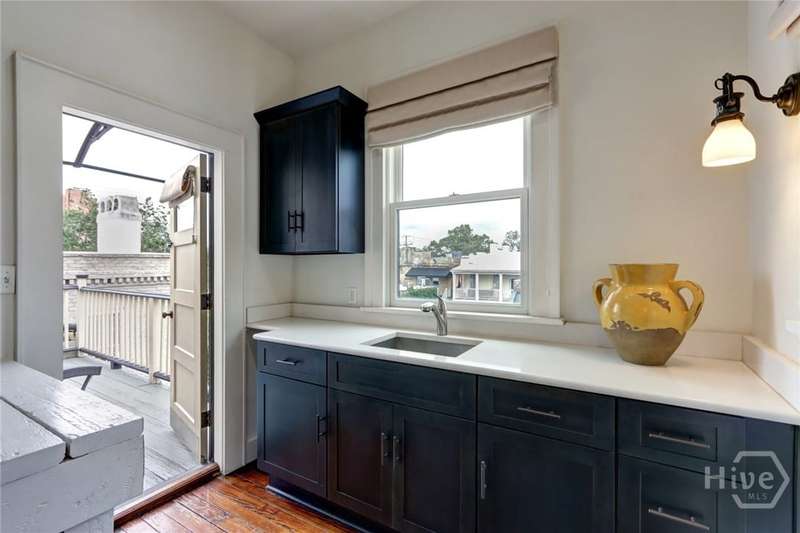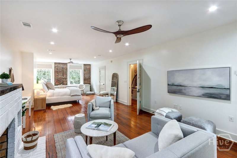 The very definition of Savannahs Modern Lifestyle! Built c.1835 for Eliza Ann Jewett, Savannahs premier Real Estate investor of her time, this storied & unique property exudes understated sophistication. Located on arguably the finest block of the Landmark District, the home has been thoughtfully updated & re-imagined over the years. Original detailing throughout - Hardwoods, exposed Rafters & Brickwork, Mantels, etc. Excellent flow and light Semi-formal Front Parlor, open Concept Kitchen & Dining Area w/ Sunroom & Porch adjacent. Sweeping Master Suite w/ Sitting Area & a 4th floor conversion to a stunning open Loft w/ Sleeping and Lounging Areas (ensuite of course) and private deck. The Garden Lvl Unit is frequently used as Guest Quarters or for Rental Income. An enchanting 2 story Carriage Hse completes the property. Both Grdn Lvl and Carriage Hse have separate exterior property access with Multiple use options. A UNIQUE AND RARE OFFERING FOR TODAY'S LIFESTYLE!