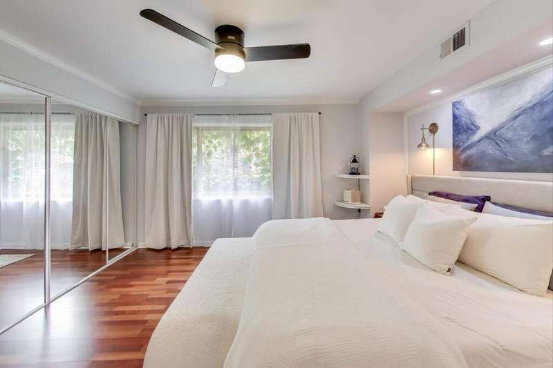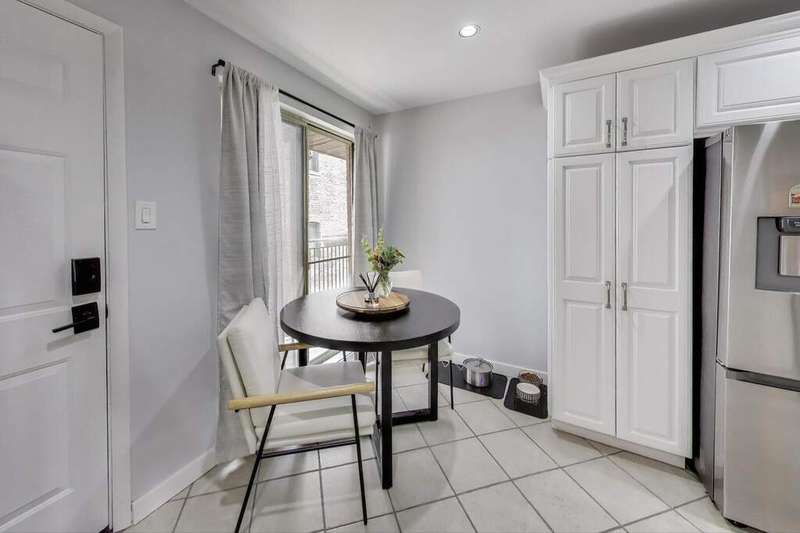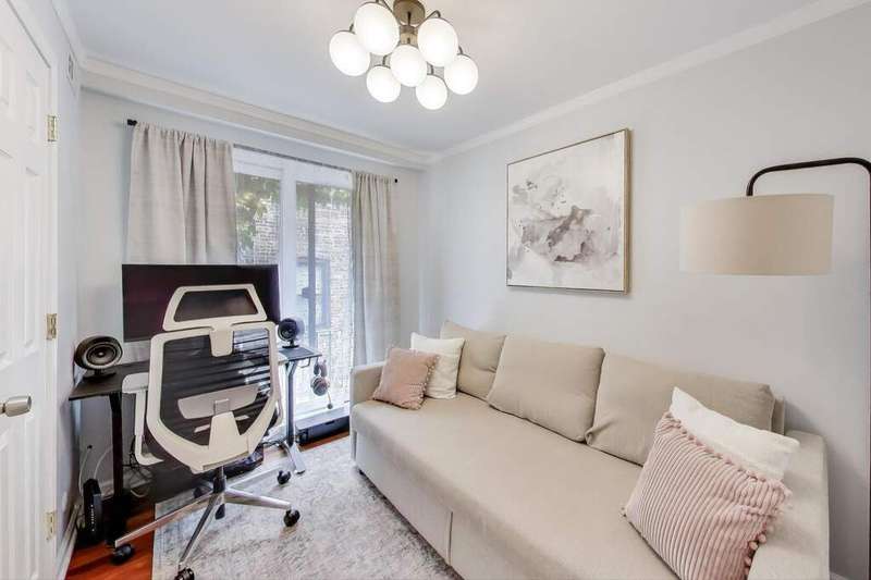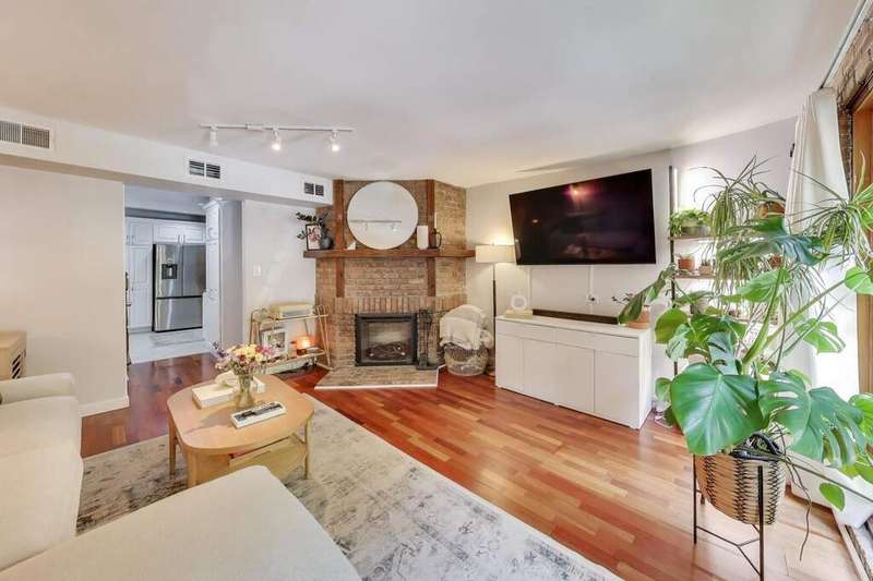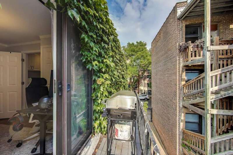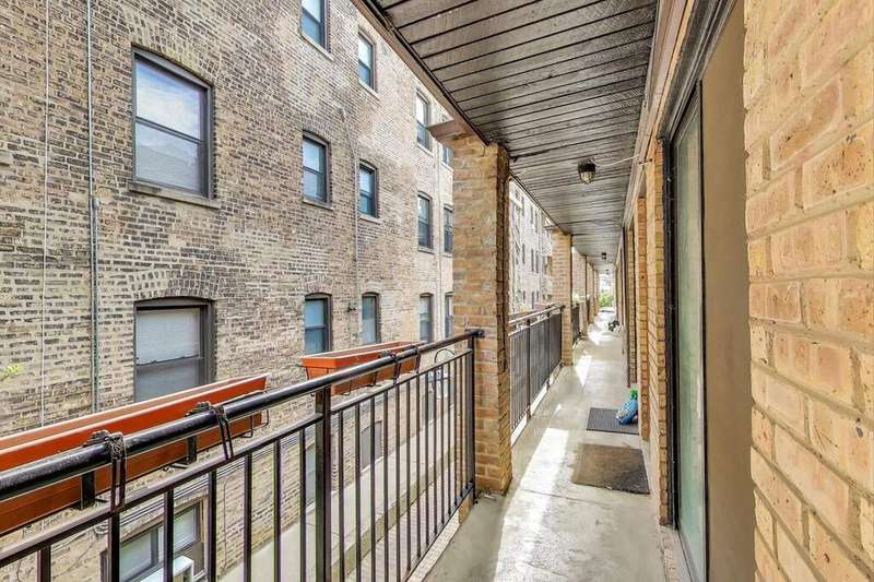 Rarely available East Lakeview 2 bed 1.5 bath duplex up with exterior gated parking included! Step into your updated eat in kitchen w/ refinished white cabinetry, stainless steel appliances including a new Samsung refrigerator, natural stone counter tops, & an abundance of storage. The open living area right off the kitchen showcases refinished hardwood floors, an electric fireplace with exposed brick, designer lighting, and a wall of sliding glass doors that fill the space with natural light. Perfectly situated powder room on the main level between the kitchen and living space. The 2nd level includes two bedrooms with hardwood flooring throughout, convenient side-by-side laundry, and a full bath. The primary suite is bright with oversized windows and abundant closet space, while the second bedroom includes a walk-in closet and private balcony. Well-managed building with low assessments and utilities. Steps from the lakefront path, gyms, shopping, dining, and public transportation.