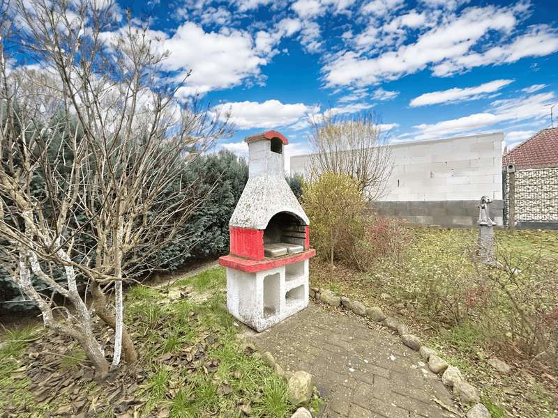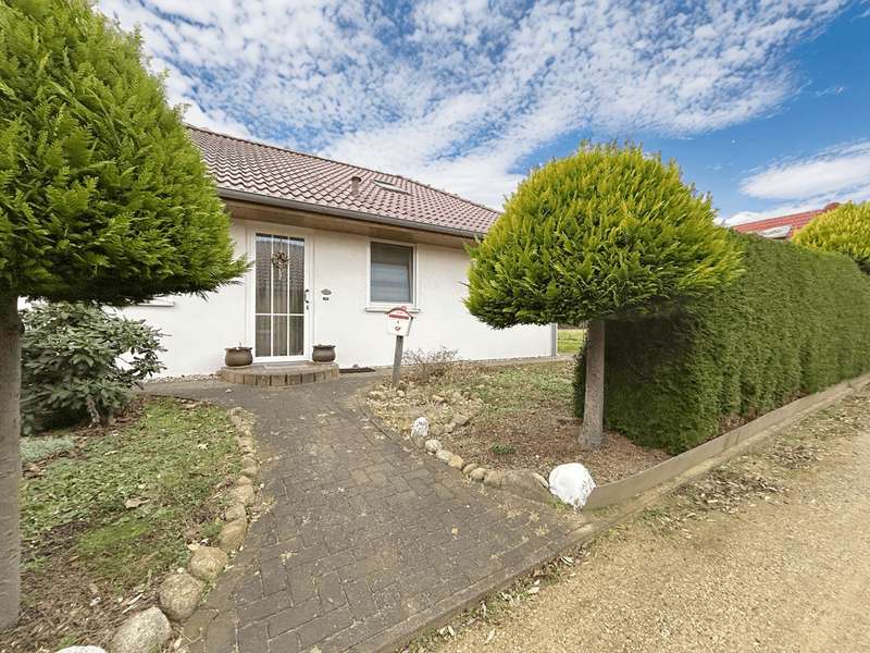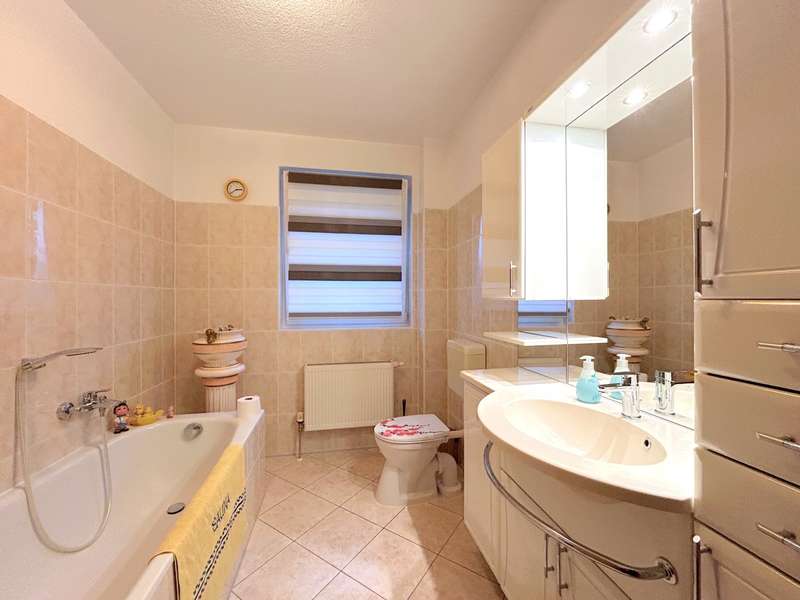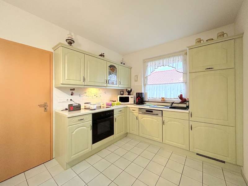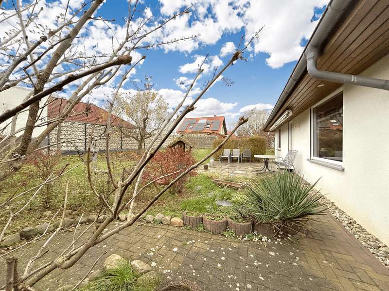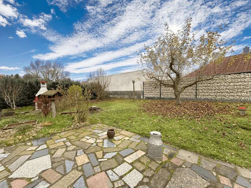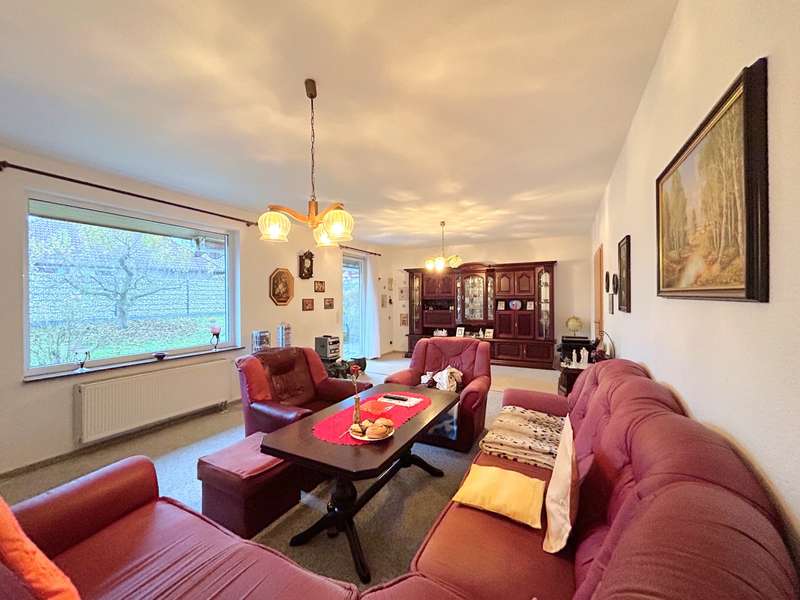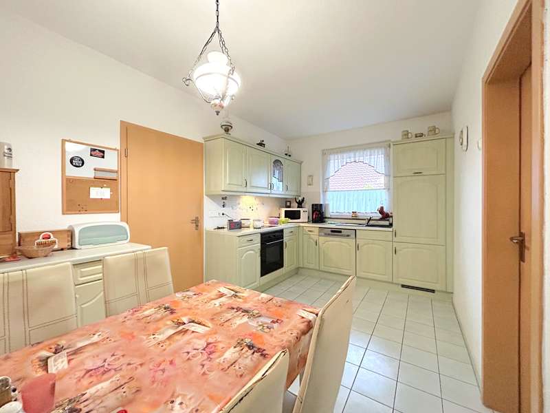 This residential bungalow was built in 2002 and is characterized by its fantastic location in a family-friendly residential area. The house offers a total of three rooms spread over a living space of around 97 m². The rooms include two well-designed bedrooms and a spacious living room that impresses with its brightness. A unique combination of carpeting and tiles as well as a large display window make the living room special. The central fitted kitchen is functionally designed and offers ample work space for preparing meals. The room is large enough for a separate dining area. The bathroom is equipped with both a bathtub and a separate shower. The space is complemented by a utility room with connections for a washing machine and dryer. Furthermore, roller shutters are fitted throughout the house, providing additional protection and comfort. Heating is provided by an efficient gas condensing boiler from the year the house was built, which ensures pleasant warmth in all rooms. The energy efficiency class of the property is D, which corresponds to an average energy consumption. One of the many attractive aspects of this property is the spacious terrace, which can be protected from strong sunlight by an awning. It is ideal for socializing outdoors. The well-tended garden covers an area of approx. 250 m² and offers plenty of space for individual design and relaxation. The plot covers an area of approx. 528 m². Practical additions such as a carport with storage room and the paved driveway provide additional functionality. The roof of the house was cleaned and painted in 2018. The property also has a well that efficiently supports the garden irrigation. Despite the numerous positive aspects, it should be noted that there is mold on the exterior walls in the bedrooms. This point should be considered during a possible viewing and could possibly require further measures. The cause is not known to the owners. Note: If you have filled in your contact details completely, the exposé will be sent fully automatically. Please contact us for further information and a viewing appointment.