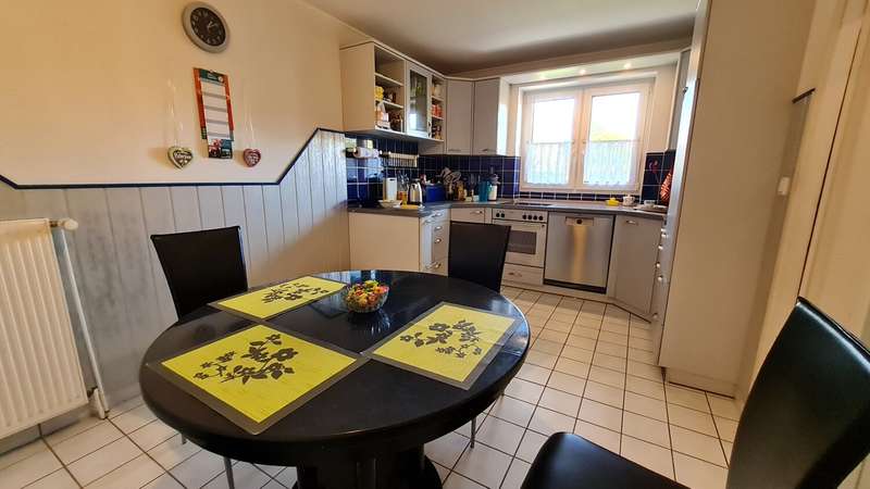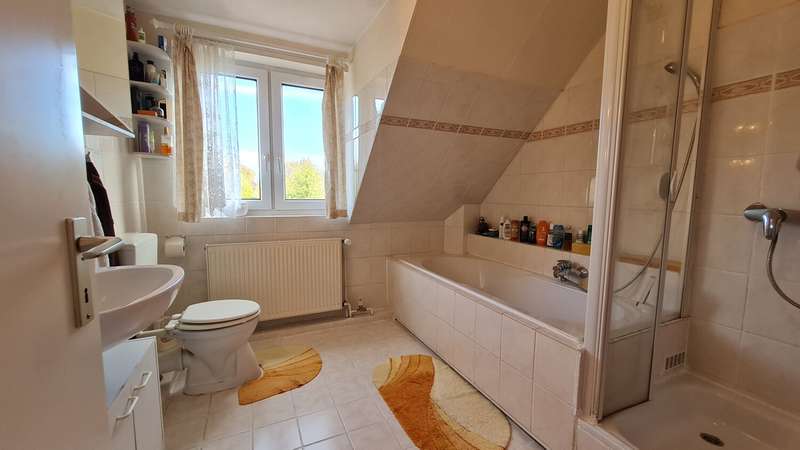 This well-maintained mid-terrace house, built in 1999, presents itself with a well thought-out room layout on a living space of approx. 104 m² and stands on a plot of approx. 314 m². The house is ideal for singles, couples or families who appreciate a convenient and central residential location. The property has a total of four well-designed rooms that offer plenty of natural light. The highlight of the house is undoubtedly the spacious home cinema, which is equipped with a high-quality B&O system and promises an exclusive movie experience. The high-quality fixtures and fittings and modern media technology are already included in the purchase price. Further features such as a fitted kitchen, a full bathroom with a whirlpool bath and underfloor heating as well as a separate guest WC ensure maximum living comfort. Some of the windows are fitted with external blinds to provide additional privacy and sun protection. The loft offers a practical expansion reserve and is accessible via a folding staircase. A folding balcony opens up further possibilities for relaxing hours. The spacious terrace invites you to linger outdoors and offers a pleasant view of the outside area of the property. There is also a private parking space available for parking your car. The house is heated by a gas central heating system from 2011, which ensures an efficient and comfortable indoor climate in all seasons. The combination of a well thought-out room layout, modern features and the well-kept overall presentation make this house a convincing offer for owner-occupiers and discerning buyers. You are welcome to arrange a viewing appointment and see the advantages of this property for yourself.
