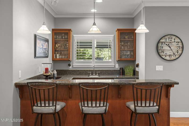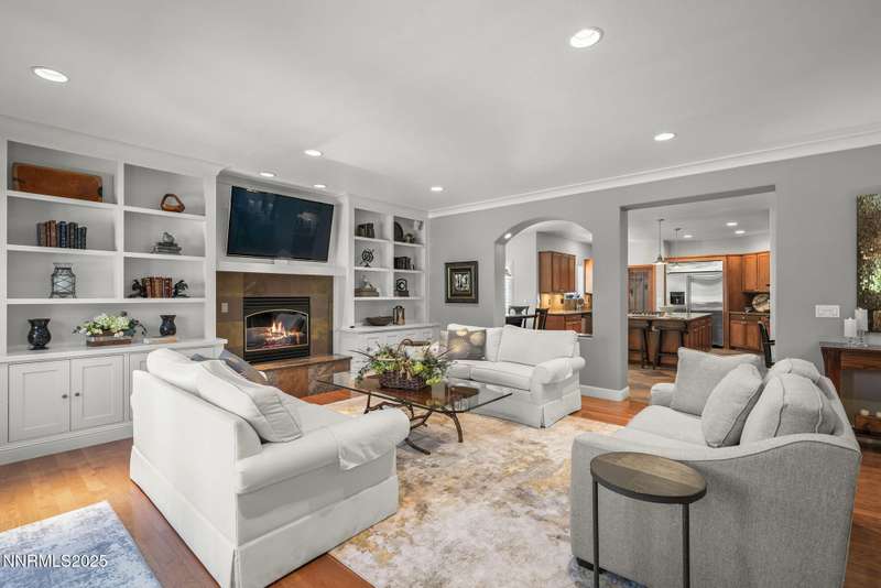 DON'T MISS THE OPEN HOUSE ON SUNDAY, 11/09 FROM 12-2PM!! Perfect 1 level custom home on over acre in Arrowcreek! 3 br plus office, 2.5 baths, and 3 car garage. Move-in ready with 2 brand new heating and A/C systems with air purifiers. Gorgeous landscaping with numerous trees and greenery. The backyard is serene and private (see video & virtual tour), with patios that have views of the lush yard and soothing waterfall and pond creating a tranquil oasis for outdoor living that is accessible from family room, office and primary suite. Stylish open floor plan for entertaining as well as everyday living. Spacious great room has large walk-in wet bar and one of the 3 cozy fireplaces, and is open to the formal dining, kitchen and outdoor patios and dining. Large fully equipped gourmet island kitchen features quality cherry cabinets with pull-out shelves, beautiful granite counters, full granite back splash, Dacor stainless double ovens, microwave, 6-burner gas cooktop, wine cooler, GE built-in refrigerator, on-demand hot water, walk-in pantry, breakfast bar and a dining nook. Separate office/den with fireplace, beautiful views of the grounds through bright windows and double glass doors to the patio. Open yet separate formal dining. Spacious primary suite has a sitting area with a fireplace, luxury bath, dual vanities, jetted tub, steam shower, large walk-in closet, access to backyard and private patio. Other features include Bose surround speakers, water softener, custom light fixtures, and newer paint, gorgeous hardwood floors. Kachina Court is a special lower elevation location close to the gated entrance and Residents Center with pools, year round hot tub, gym, pickellball tennis open space. Golf and social memberships are available at the Club at Arrowcreek which has top notch dining, 2 championship golf courses, numerous activates, pickleball, pool complex, events center. Tours of the club are available. Must see home in excellent condition!
