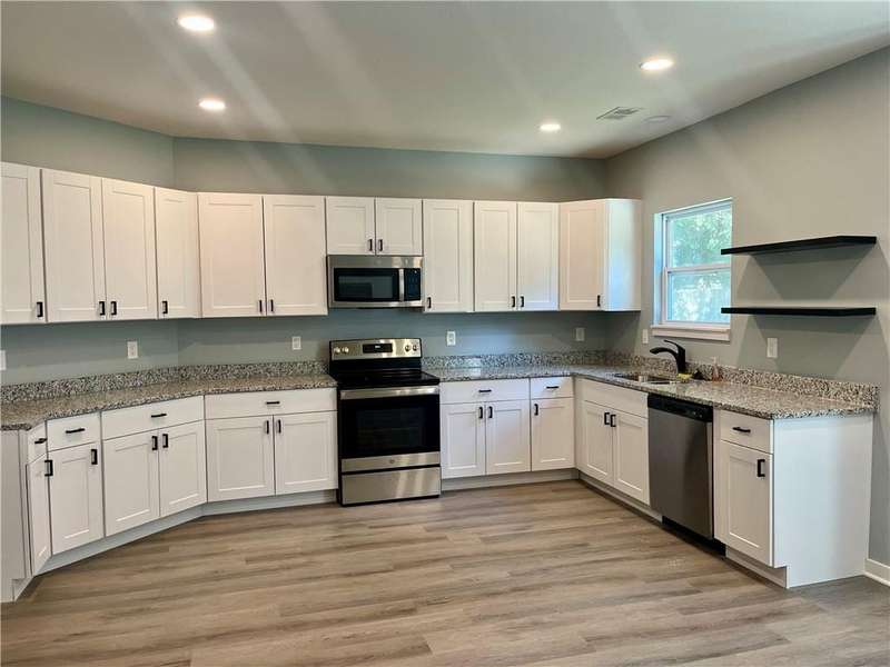 Like-new ranch with a thoughtful open layout and high-quality finishes throughout. This home boasts 3 spacious bedrooms and 2 full bathrooms, including a private primary suite complete with a tiled shower, double vanities, and a built-in safe room in the walk-in closet. The kitchen is equipped with sleek granite countertops and ample workspace, perfect for both everyday living and entertaining. Experience the convenience of one-level living with all bedrooms, bathrooms, and laundry located on the main floor.