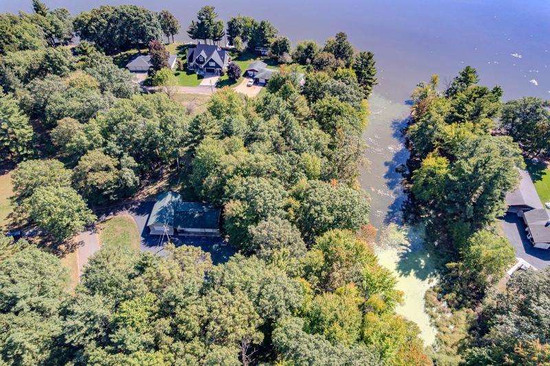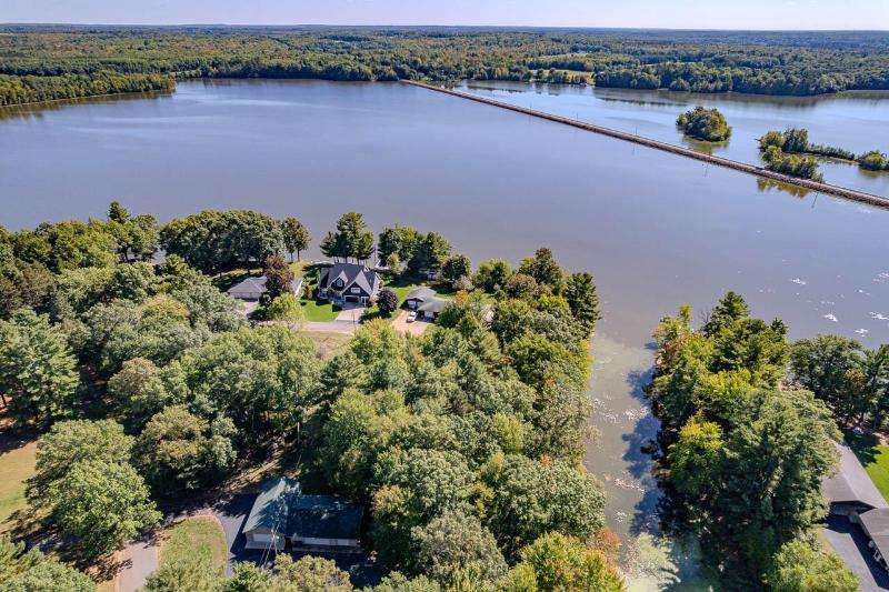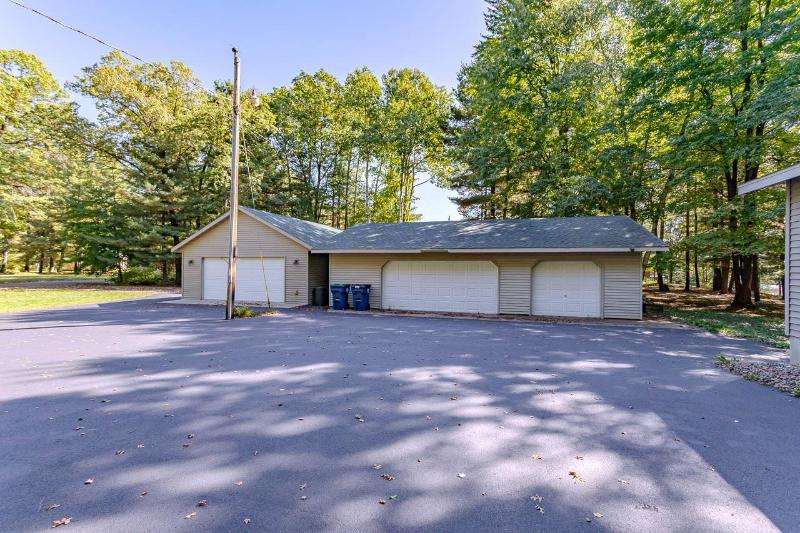 1.4 ACRES OF WOODED PRIVACY WITH LAKE DUBAY FRONTAGE! This home features 3 bedrooms, 2 baths and an open concept design for the kitchen and living rooms. An attractive fireplace in the living room is flanked by a patio door on each side that leads to a spacious deck. Great for enjoying the peace and serenity of the wooded backyard. The primary suite is spacious and includes a private bath and nicely sized walk in closet. Need more room...the lower level is unfinished and is highlighted with a walk out to the backyard. Need a workshop or extra garage space...this property includes a 24x40 and 30x40 detached building, both with electricity. A few of the extras include central air, vinyl siding, shingle replacement on all 3 buildings in approx. 2022, Generac Generator, water treatment system and partially fenced backyard. The 1.4 acres included in this sale consist of 3 separate parcels. Call today with any questions, additional information or to schedule a personal showing. The 3 parcels included in the sale are: #048-2607-214-0003, #048-2607-214-0004 and #048-2607-214-0017. The tax amount shown includes the 2024 property taxes for all 3 parcels.