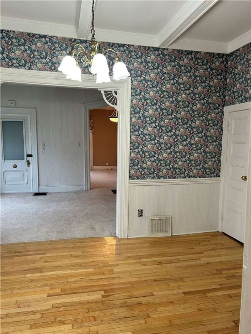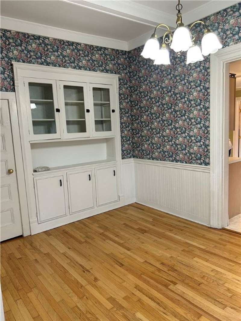 Spacious bright and clean with tons of charm this 2 bedroom and 1 and a half bath lower unit is on a large beautiful lot. Full bath is completely renovated, large airy fully applianced kitchen, some new carpet, laundry room, formal dinning room with built ins and off street parking. Application and credit check required.