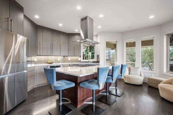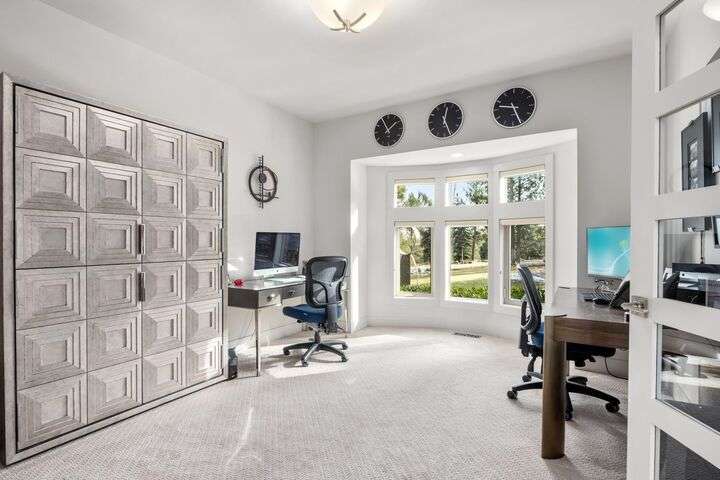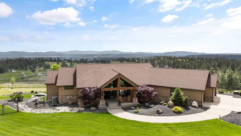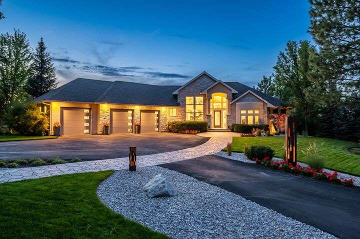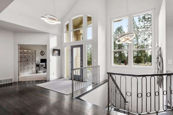 This stunning 5,347 sq. ft. rancher with full daylight walkout basement was completely remodeled in 2019 and offers upscale living at every turn. Featuring solid oak hardwoods, a chef’s kitchen with quartz slab counters & stainless appliances, and a formal living room with gas fireplace. This one-owner home is designed for both comfort and style. The primary suite boasts a spa-like bath and massive custom walk-in closet, while the lower level stuns with a family/rec room, climate-controlled wine cellar, wet bar, three bedrooms (one with private patio), and walkout access. Outside, enjoy tiered patios, a full outdoor kitchen, and beautifully landscaped grounds--water feature, fire pit and picturesque sunset views. Three car garage with EV charging station and the home is generator ready—all in one of Spokane’s most prestigious communities. Truly a must-see.