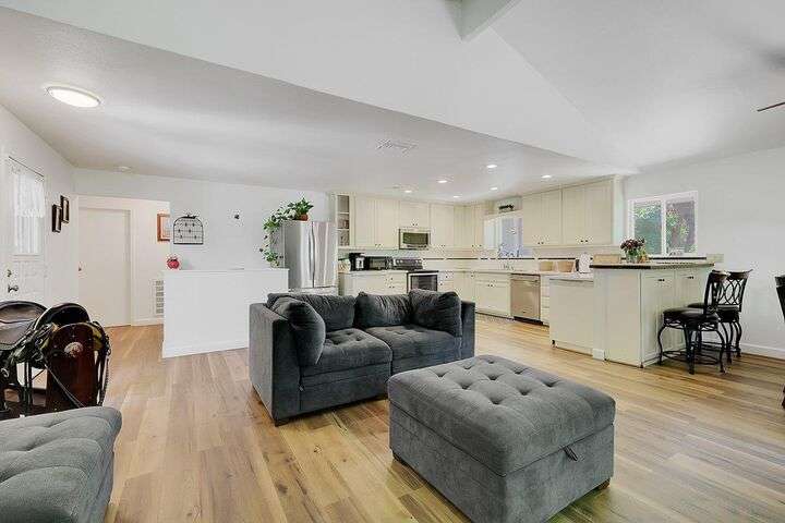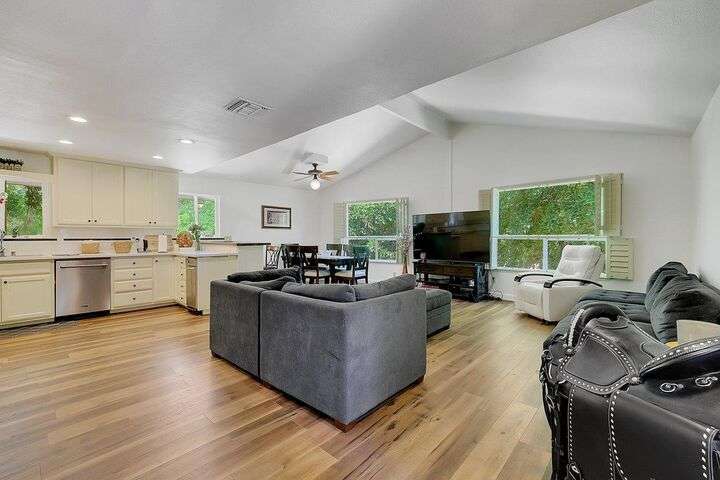 Beautiful 3-Bedroom, 3-Bath Home on 5 Acres with Private Airstrip Access! Spacious 2,900+ sq ft home situated on 5 peaceful acres with direct access to a private airstrip. This updated property features a modern kitchen with quartz countertops, stainless steel appliances, and cream-colored cabinets. The large great room and updated bathrooms offer a perfect blend of comfort and modern style. The bright primary suite includes a luxurious bathroom and a walk-in closet with ample storage. The finished basement features a bedroom, full bathroom, and separate living area ideal for guests or multi-generational living. Additional highlights include covered RV parking with electric, water, and septic hookups, a large shop with roll-up doors and electricity. The property also features its own private well and septic system. Privacy, functionality, and lifestyle this home has it all!