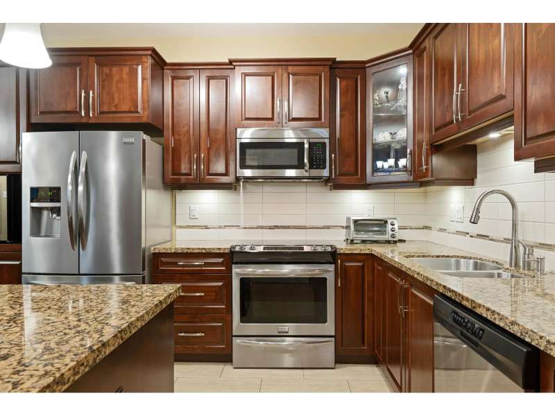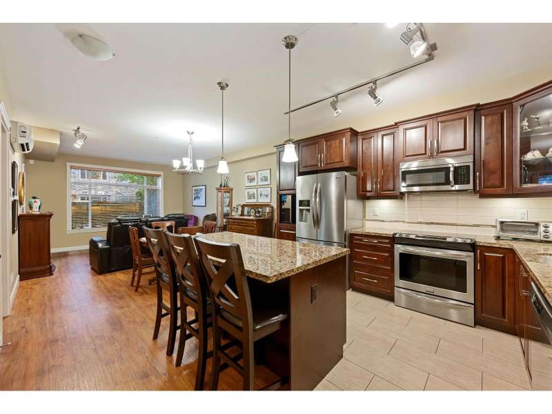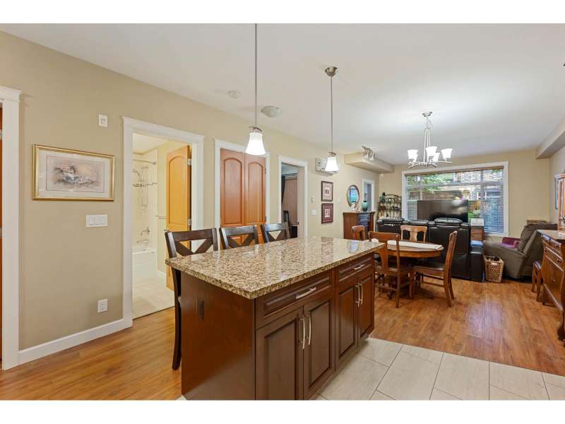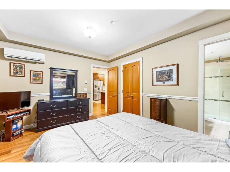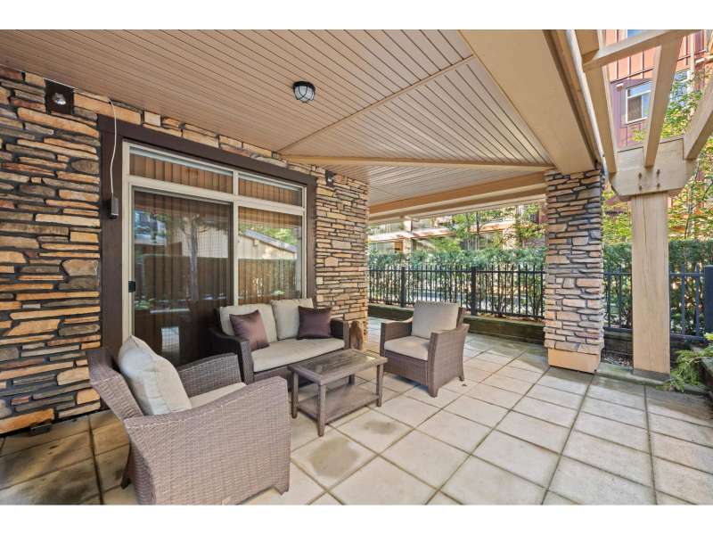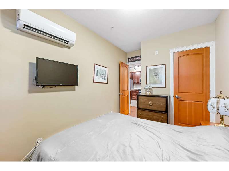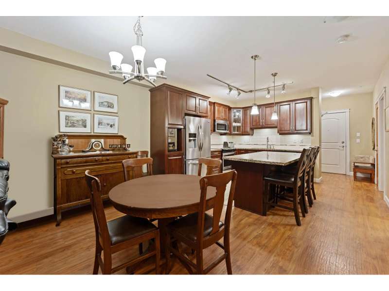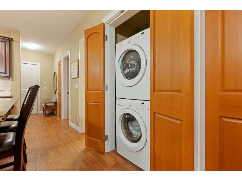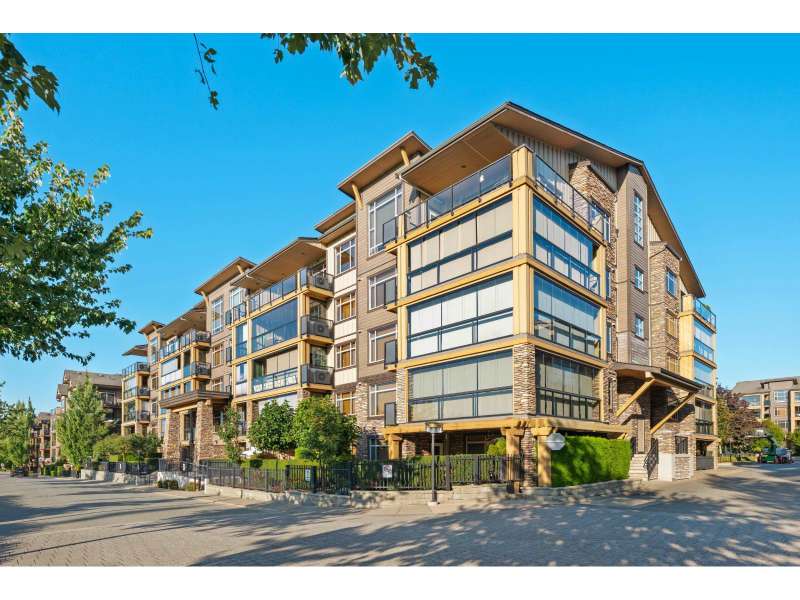 Corner unit in highly sought-after Yorkson Creek! This rare "A" Plan (1,023 sqft) offers luxury and convenience with a stunning wraparound patio perfect for outdoor living. The open great room layout features a gourmet kitchen with dark wood cabinetry, granite counters, stainless steel appliances, and an oversized sit-up island. Includes 2 bedrooms + den, with a spacious primary suite boasting a walk-in closet and spa-inspired ensuite with heated floors and oversized shower. Comes with 2 underground parking stalls and a large, powered roll-up storage unit. Residents enjoy exercise and amenity rooms. Fantastic location next to Yorkson Middle, minutes to parks, shopping, dining, entertainment, and walking distance to Carvolth Exchange. A beautiful home in a prime community! (id:58403)