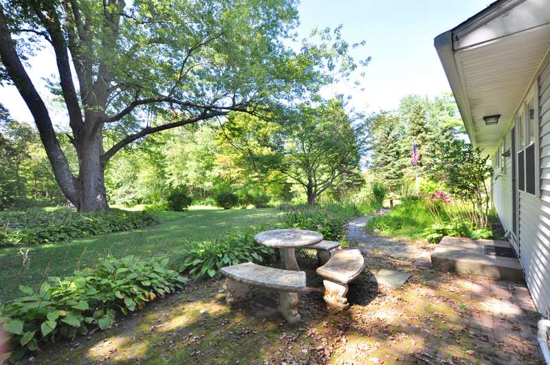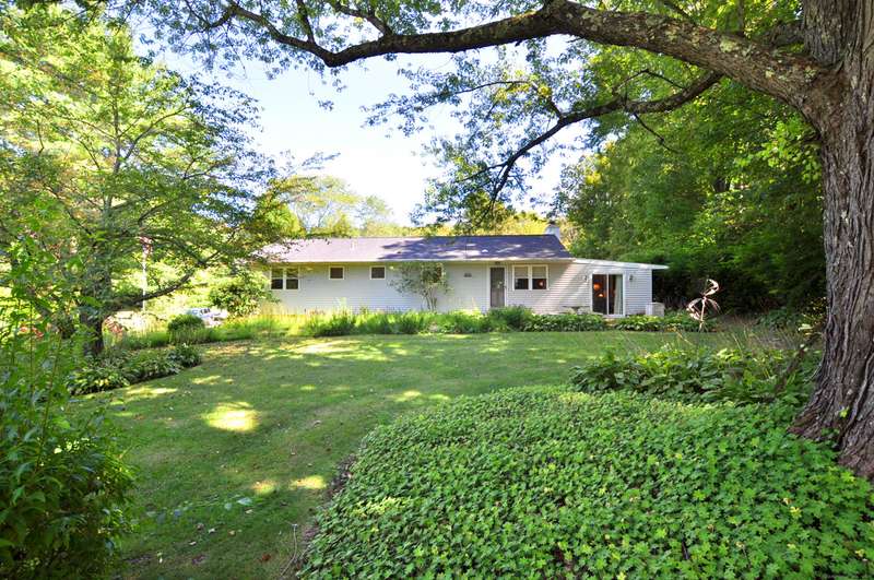 Charming one-level living in a beautiful setting. Enjoy the ease of one-level living in this thoughtfully designed home, nestled in a peaceful and scenic location. Step inside to an inviting open floor plan that seamlessly connects the bright living and dining areas-perfect for both relaxing and entertaining. Just off the dining room, you'll find a cozy family room ideal for gatherings or quiet evenings. The primary bedroom features a private half bath and a walk-in closet, offering comfort and convenience. Hardwood floors flow throughout all bedrooms as well as the main living and dining spaces, adding warmth and timeless style. Don't miss the opportunity to make this lovely home-- with newer roof and gutters-- yours!