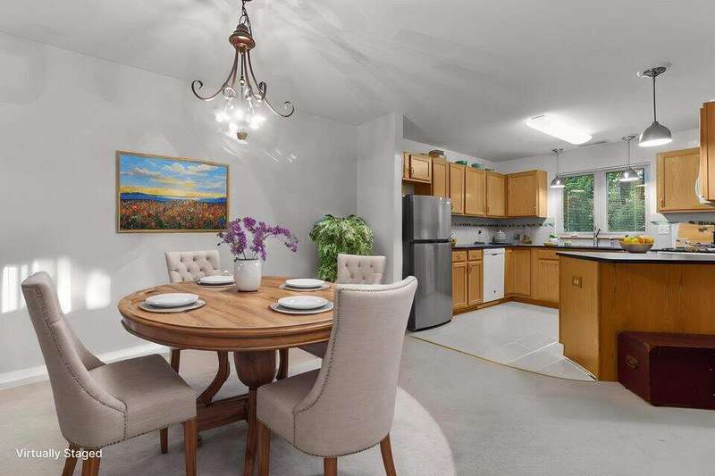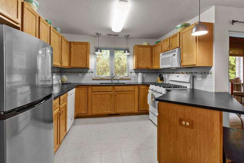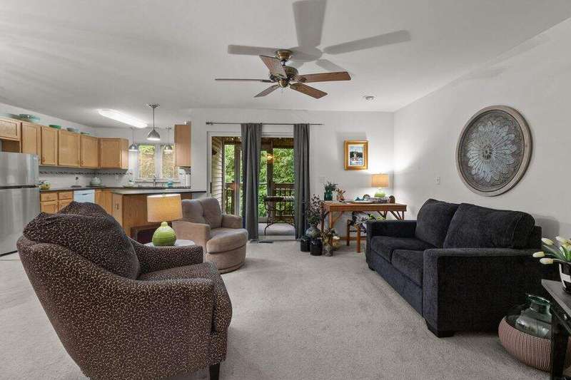 Convenient first floor, 2 bedroom & 2 bath condominium in Williams Bay. This is a well situated home in the Bayside Pointe Association located just blocks to the beach, boat launch, Park & Village Center. This condo offers a peaceful atmosphere for your family and guests. The open concept layout features a cozy living room, perfect for gatherings or quiet nights in. Enjoy morning coffee in the adjoining dining area, or on your screened in porch which looks out into a dense wooded area. Kitchen offers tons of storage. Retreat to the primary suite, complete with an en-suite bathroom featuring a walk-in shower. Additional bedroom is perfect for family or guests, and has built-ins for a home office. Attached garage unit, short walk to pool and in-unit laundry.Some photos virtually staged
