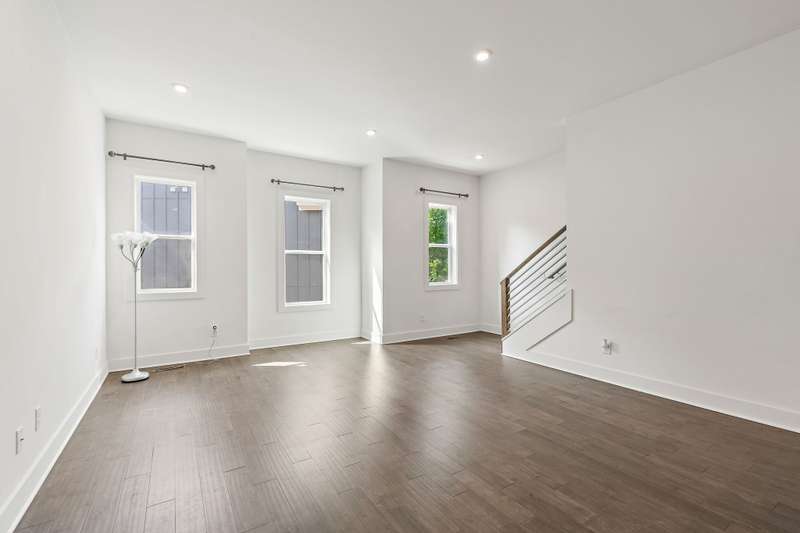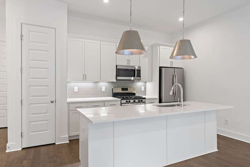 Spacious main level with abundant natural light, hardwoods throughout--no concrete floors like some other units! The well-appointed kitchen features quartz countertops & stainless steel appliances.