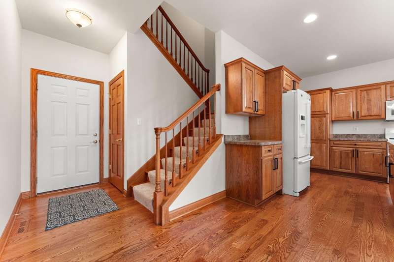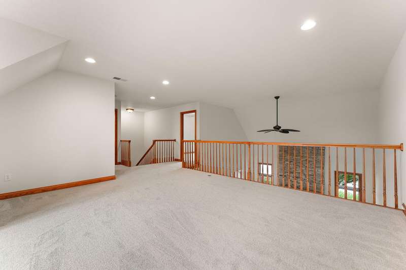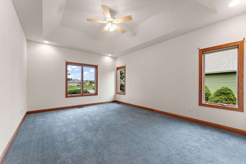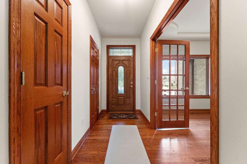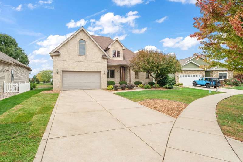 Quality Construction thru out this Custom Built 1.5 Story home located on a peaceful private LAKE LOT in Country Meadows Estates . Enjoy fishing in your own backyard! Well designed oak kitchen with a breakfast room and solid 3/4 Oak floors, Sliding doors lead to a beautiful 21x16 deck with gorgeous sunset views over the Lake. Large 2 story family room with beautiful custom gas fireplace. New Paint and New carpet thruout most of the home! Main floor primary suite with whirlpool tub, Huge double vanity,separate shower, private toilet and a great sized Walkin closet. French Doors lead to Office/Den/Formal Dining Room, Powder room and laundry room complete the first floor. Upstairs has 2 great sized bedrooms and a full bath and with a LOFT overlooking the 2 story family room. All new paint and carpet upstairs. Full basement is finished with a huge Recreational Room and a large 3/4 bath. Over 300 sq ft of unfinished storage space. 2 x 6 Construction, Andersen windows, conduit electric and copper water lines. 3/4 inch solid oak floors, 6 panel solid OAK doors and trim. Finished and heated deep two car garage. Conveniently located in town of Winfield, Close to shopping, restaurants, schools and churches. Just minutes to downtown Crown Point or East to Downtown Valpariaso .