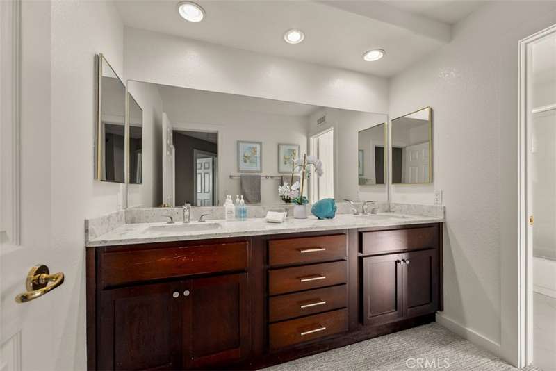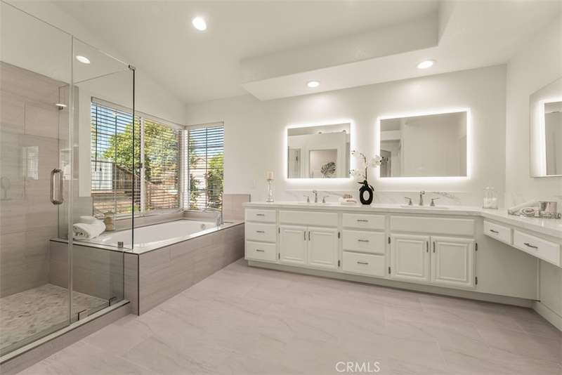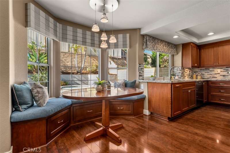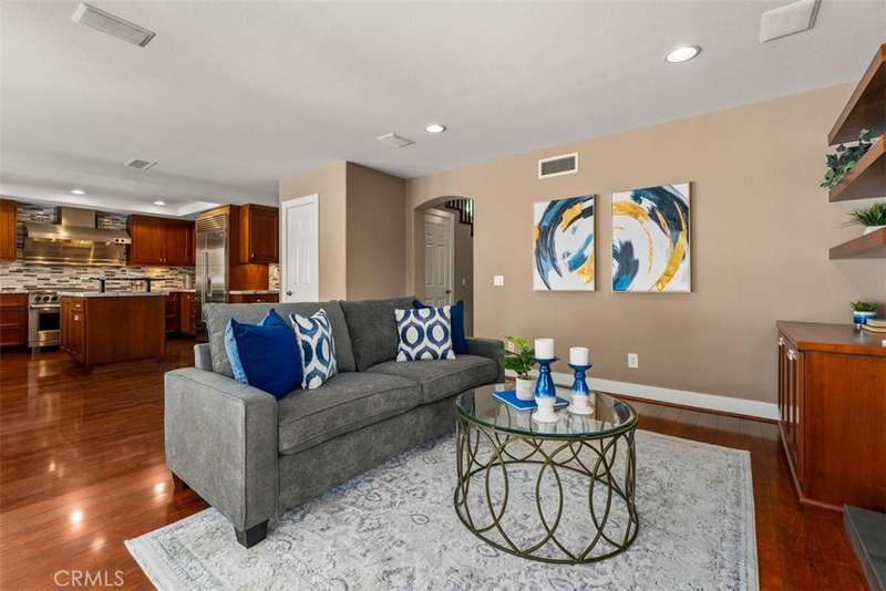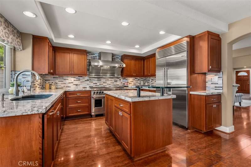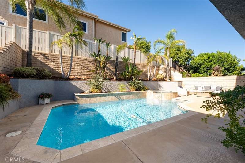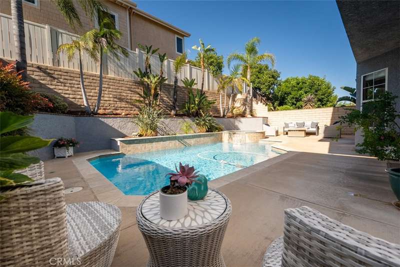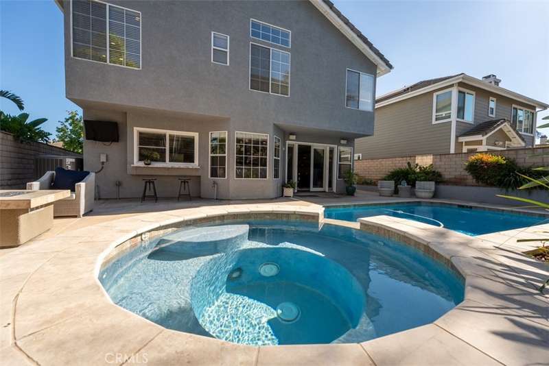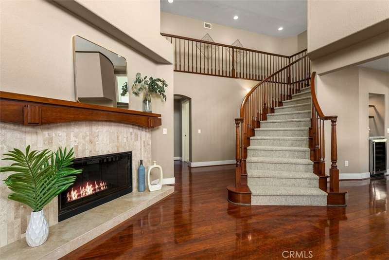 Welcome to Fairmont Terrace, a gated community offering privacy and convenience. This spacious 4 bedroom home, 3 baths with a loft and three-car garage showcases an open floor plan with thoughtful upgrades throughout. The main level features a bedroom and bath, perfect for guests or multigenerational living. Enjoy gatherings in the living room with a custom-tiled fireplace and wood mantle, a formal dining room with a dry bar and wine fridge, and a family room complete with fireplace, built-ins, and French doors that open to the backyard retreat. The remodeled chef's kitchen boasts custom cabinetry, granite countertops, designer tile backsplash, stainless steel appliances including a Wolf six-burner cooktop, built-in Sub-Zero refrigerator, Sharp drawer microwave, walk-in pantry, and a cozy breakfast nook. Upstairs, a versatile loft with ceiling fan complements two secondary bedrooms and the luxurious primary suite, featuring vaulted ceilings, dual closets including a custom walk-in, and a spa-like bath with quartz countertops, soaking tub, walk-in shower, and light-up mirrors. Step outside to a private oasis with a saltwater pool and spa with waterfall accents, fire pit, and plenty of room to relax or entertain. Additional highlights include: steamer shower downstairs, interior laundry, surround sound, water softener and reverse osmosis system, updated HVAC upgrade, Lenox furnace/AC/ducting, new carpet, vinyl flooring, garage with built-in cabinets, Generac 24w generator and two EV chargers. Ideally located within the award-winning Plac/Yorba Linda school district and walking distance to parks and schools, this home combines elegance, function, and lifestyle in one perfect package. Your home search is over!