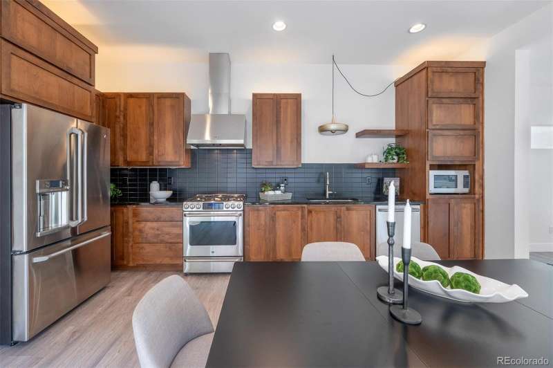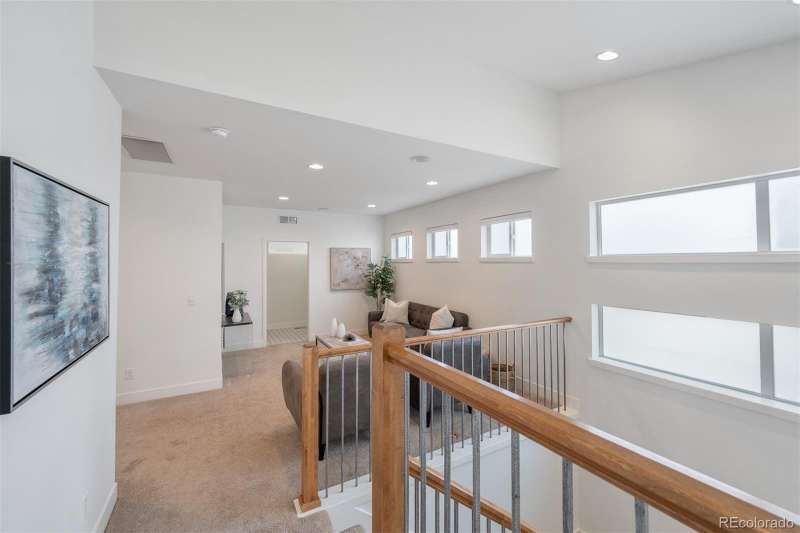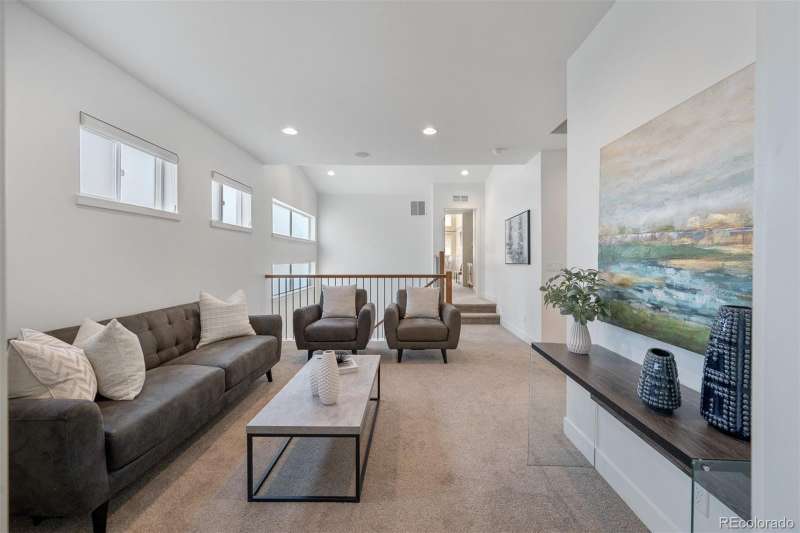 Rare, very rare Brookfield SIX model. 4 doors from park!! BEST PRICED MIDTOWN HOME. Aggressive Seller! Spacious living room with 3 large windows. Kitchen features stainless GE appliances, side by side refrigerator, gas range, dishwasher & microwave . Dining area with access to patio. Study has glass entry door and opens to patio. Mudroom area has pantry and powder room. Open staircase with second level loft. Primary suite has double vanity bath with shower & tub and ample closet space. Second bedroom with ensuite bath. Laundry conveniently located on upper level. Finished basement --large family room, bedroom and 3/4 bath. First time on market. Fresh paint and move in ready with HVAC serviced and roof inspected. Central air. Mature landscaping and awning on patio. Trowel finish on walls. Designer window shades. Home is prewired for sound & security. Sonos music streaming amp included to power ceiling speakers. The master planned community is the bonus! A park just yards away, Little Dry Creek Trail, community garden and dog park. Town center at 67Th & Pecos has cafe, brewery bar and weekend food trucks. Light rail is a mile away. Located near hub of I-70-76 -25 & 36. The school choices are excellent. Trailside Elementary or Midtown Montessori to start. Floor plan and survey in supplements. Midtown is eligible for some very favorable financing. Check with listing agent for details. This is one of Brookfield best floorplans never offered before !!