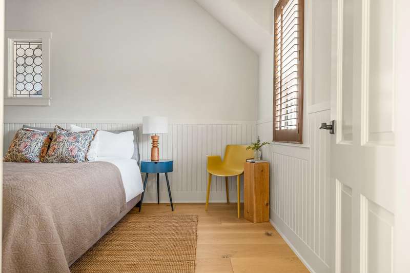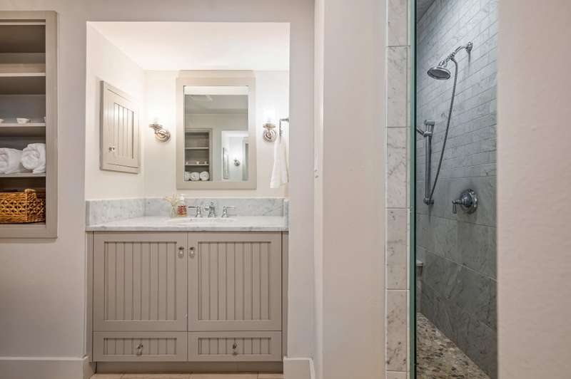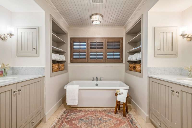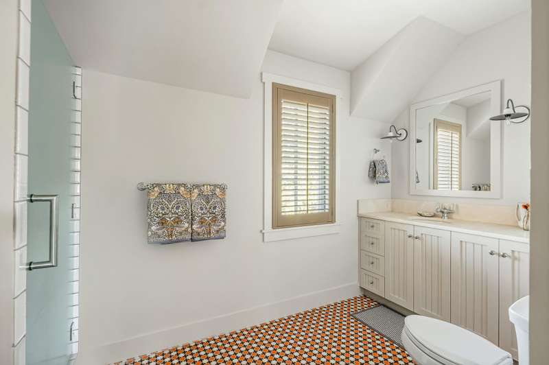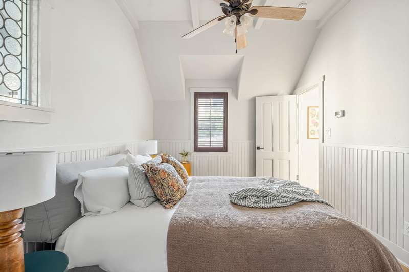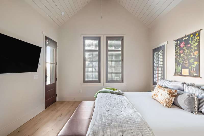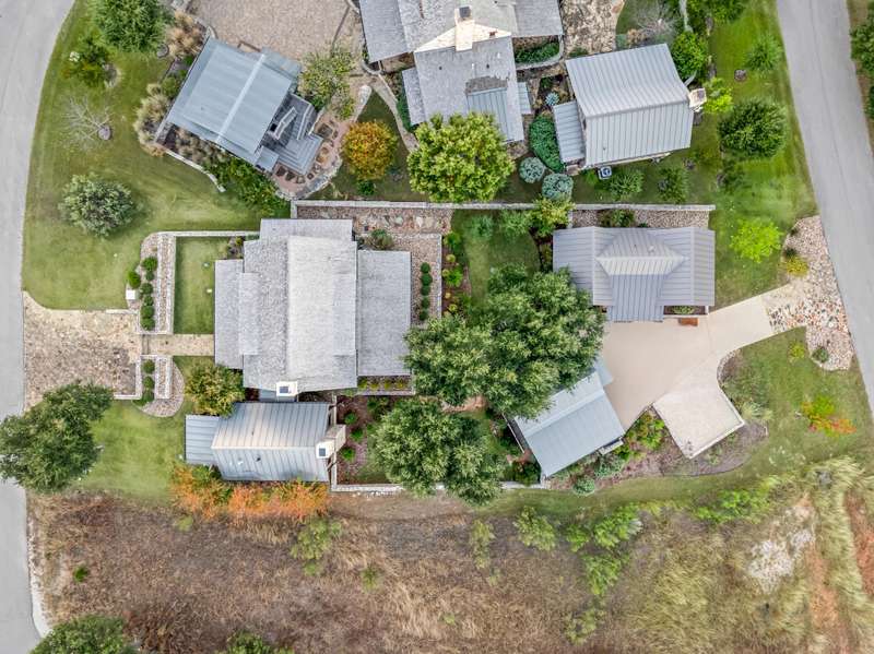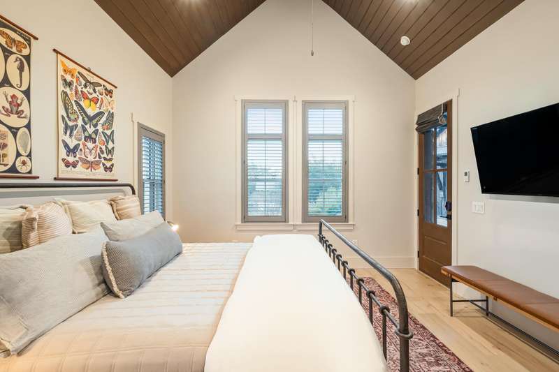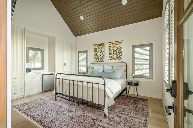 A detached guest cottage provides two private suites, each with its own entrance- ideal for hosting family and friends. The detached barn offers a two-car garage with a storage room accessible via an exterior staircase. Built by Deven Baughn of DBM Custom Homes in Fredericksburg, the residence reflects enduring craftsmanship and architectural integrity.
