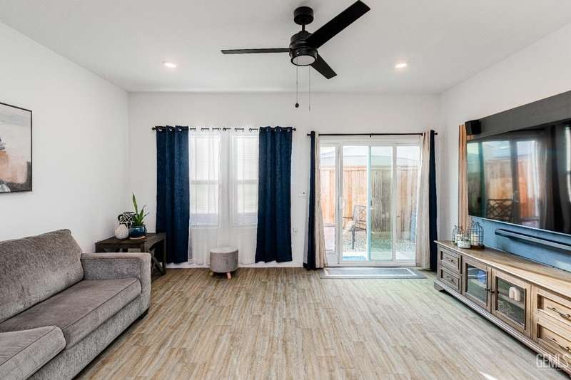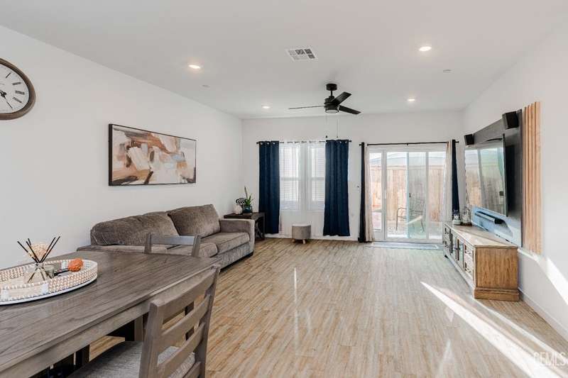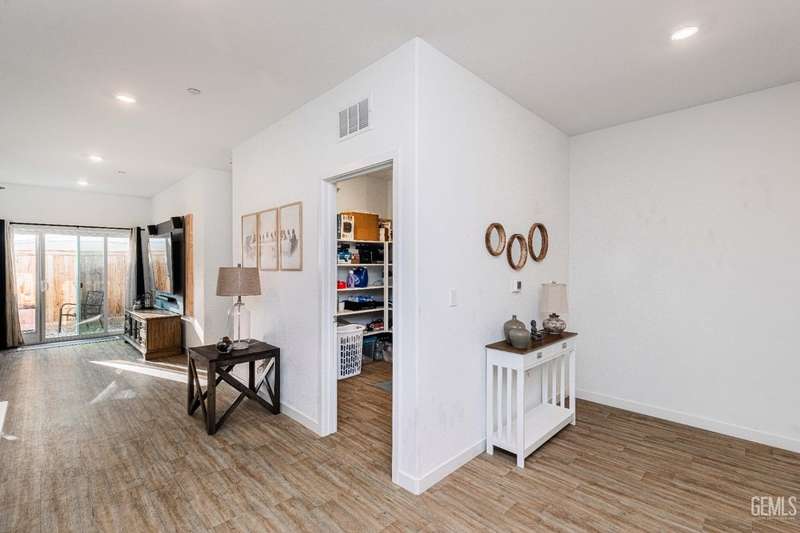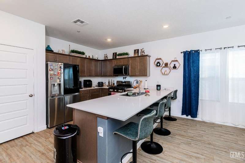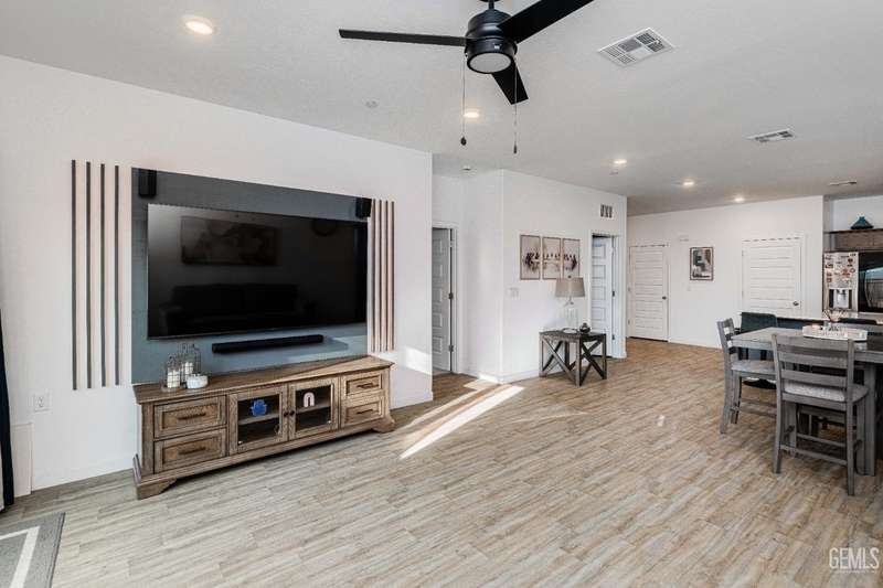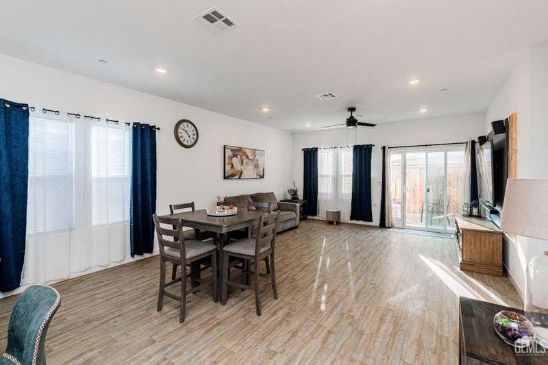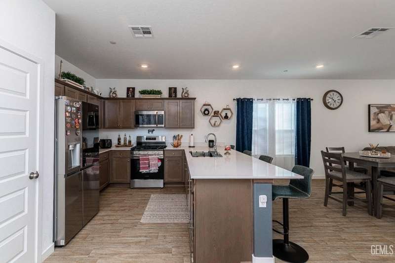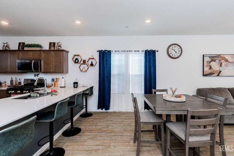 This 3-bedroom, 2-bath home in Gossamer Grove was built in 2024 and offers an abundance of modern amenities and thoughtful design features. There is durable LVP flooring in most of the living areas, providing both style and easy maintenance. The open floorplan includes a spacious family room, a well-appointed kitchen, a kitchen dining area, and a laundry room with plenty of storage cabinets. The kitchen is equipped with quartz counters, stainless-steel appliances, beautiful cabinetry, and a breakfast bar ideal for casual dining. The master suite has all the amenities you expect, including dual vanities with quartz counters and a large walk-in shower. The side yard is landscaped with synthetic turf and decorative river rocks for a clean, low-maintenance look. You will also enjoy the many community amenities in Gossamer Grove such as a park, multiple playgrounds, pickleball courts, a half basketball court, a covered picnic area, and a dog park. This home is perfect for a young family.