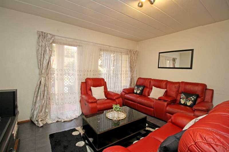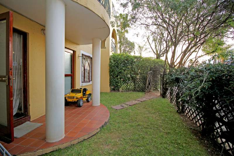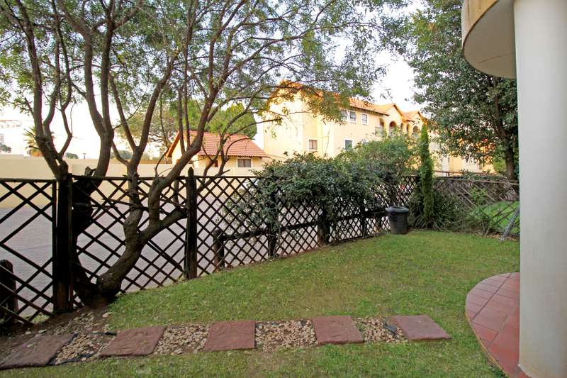 Secure ground floor unit with own enclosed serviced garden. Modern open-plan granite top kitchen with dining area. Space and water supply for two appliances and a single door fridge/ freezer. Two bedrooms big enough to fit king size beds, modern bathroom with bath/shower combination. Across from clubhouse, swimming pool in secure complex ,24 hour security, electric fencing. Across the road from Northgate/Dome, close to Fourways and Randburg. 1 covered carport in front of backdoor and second covered car port close to unit, with ample visitors parking. Security gates on doors, burglar bars on all windows. Convenient dedicated storeroom.