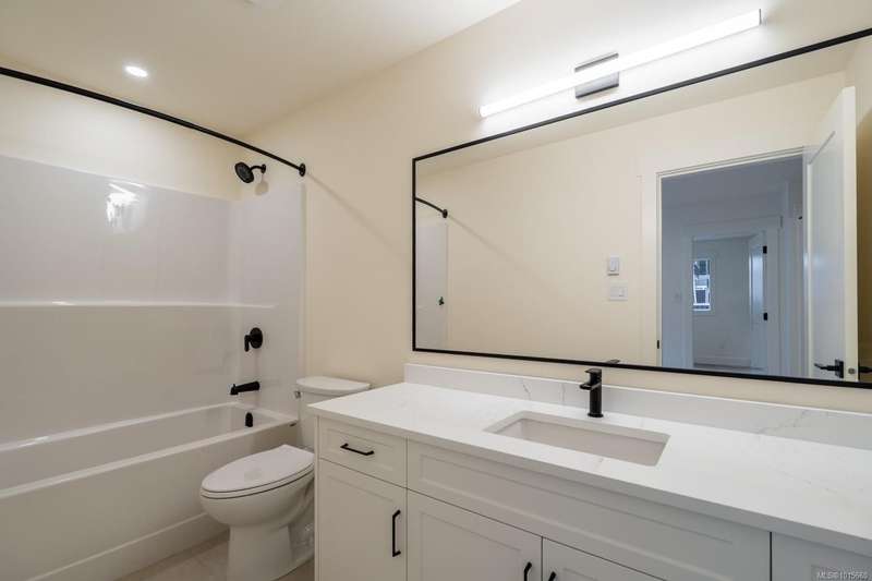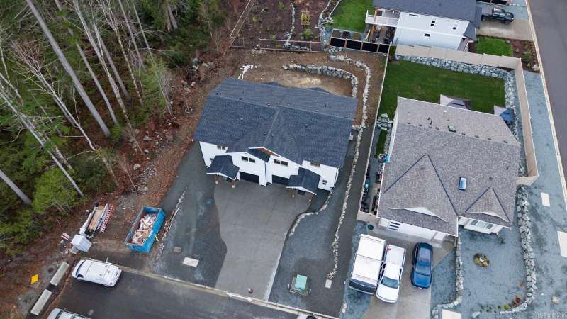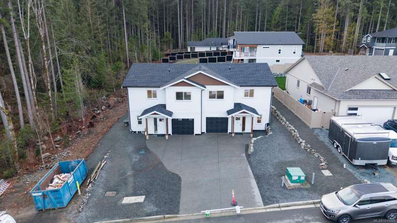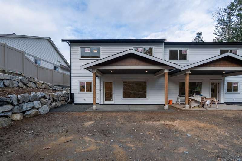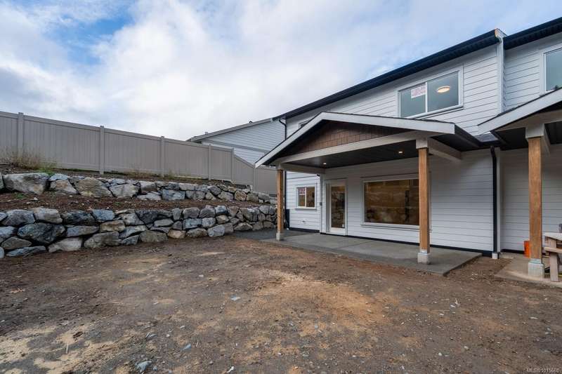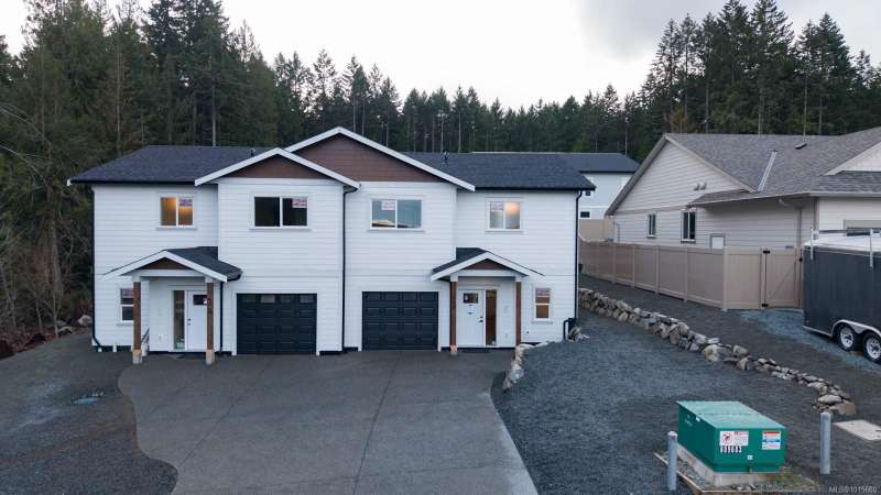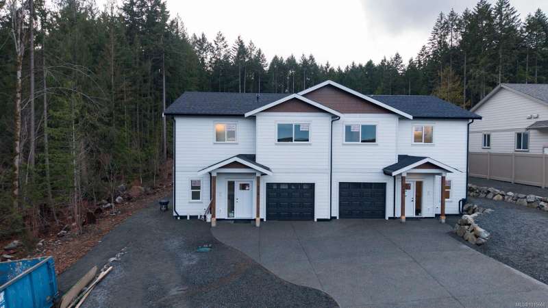 OPEN HOUSE Nov 30th from 11:00 to 1:00 pm. Stunning new half duplex at 672/668 Sanderson Rd in Ladysmith, offering 3 bedrooms and 3 baths with beautifully curated interior design—and no strata fees. The main floor features a bright, open-concept layout flowing from dining to kitchen to living space. The modern kitchen includes a large island with quartz countertops, stainless appliances, ample cabinetry, and a spacious pantry. The living area opens to a covered patio and a larger-than-typical private yard in a quiet, established neighbourhood. Upstairs, the impressive primary suite boasts a 7'x10'5' walk-in closet and dual-sink ensuite with in-floor heat. Two additional bedrooms, a full bath, laundry, and a versatile flex room complete the level. With peekaboo mountain views, quality finishes, extra garage storage, an attached garage, and a ductless heat pump, this home offers modern comfort for every buyer. Price plus GST. All measurements are approx, please verify if deemed important