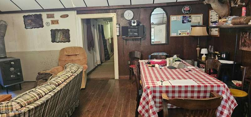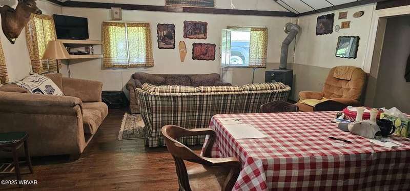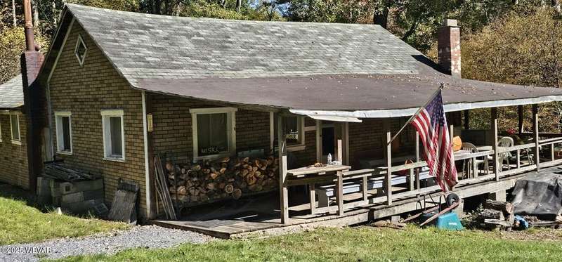 Hunting Camp with gun range on 2 acres with State Forest close by. Ride ATVs from property during the ATV season or snowmobiles in the winter. 4 bedrooms, large living room/dining room, wood heater in living room for warmth & nice size kitchen. Siding appears to be asphalt. Please call Sandy Halerz, 570-419-1832 for appointment.