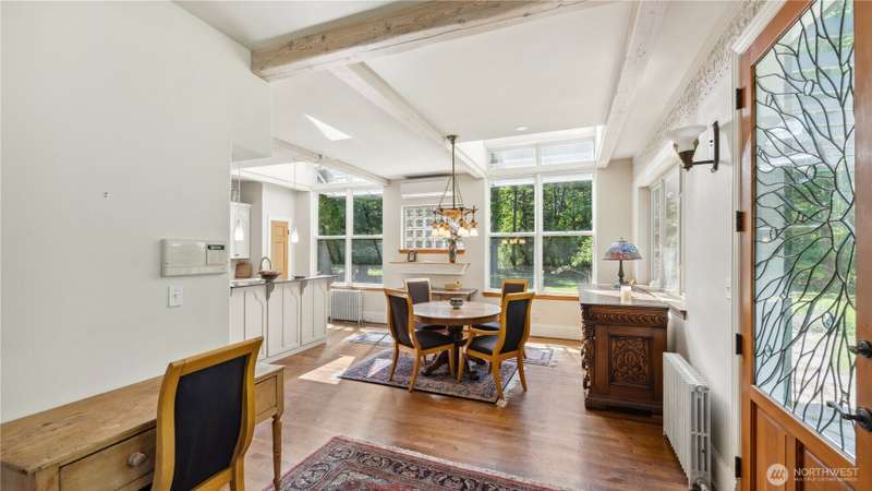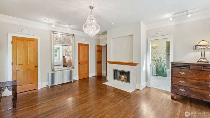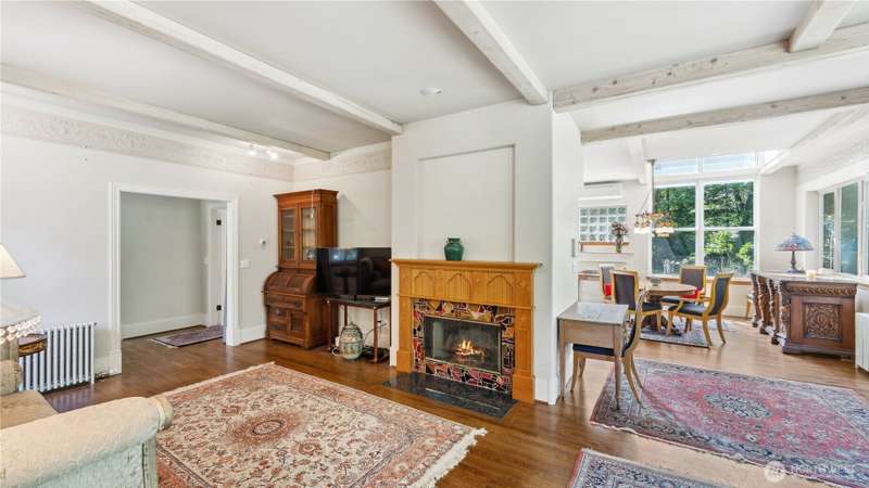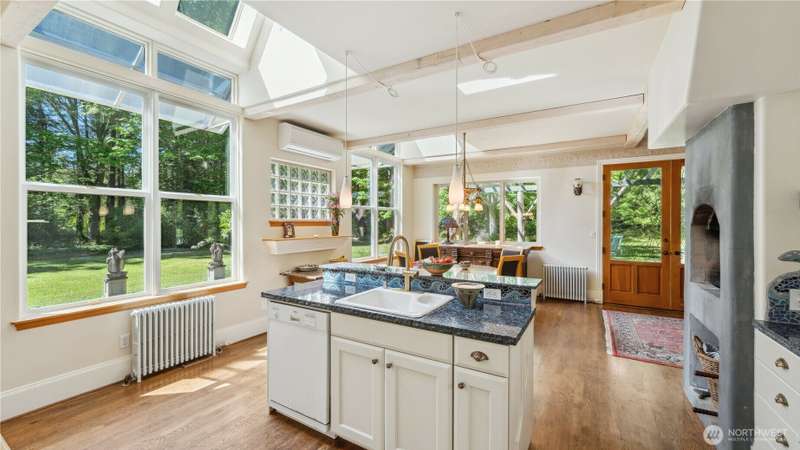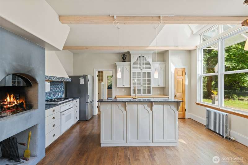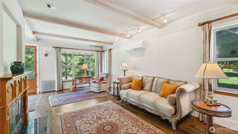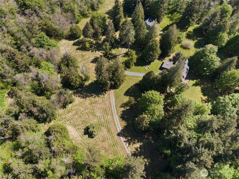 This rare 9.5 acre property has a winding driveway that opens up to gorgeous, large clearing surrounded by beautiful cedar trees. Enjoy the island lifestyle with the convenience of just a 7 minute ferry to Anacortes. Architecturally designed, quality, 2648 SF, 3BD, 3.5 BA, custom home with guest apt. Vaulted ceiling with large windows. French doors w/stain glass. Hardwood floors through out. Family room has fireplace and is connected to a library w/custom bookshelves. Main level bedroom with bathroom. Kitchen with island, gas range, pantry and small fireplace. Cozy living room with fireplace. Upper level master bedroom with window seat and large master BA. Second BD with BA. 1500 SF garage includes a studio apartment w/ kitchen.