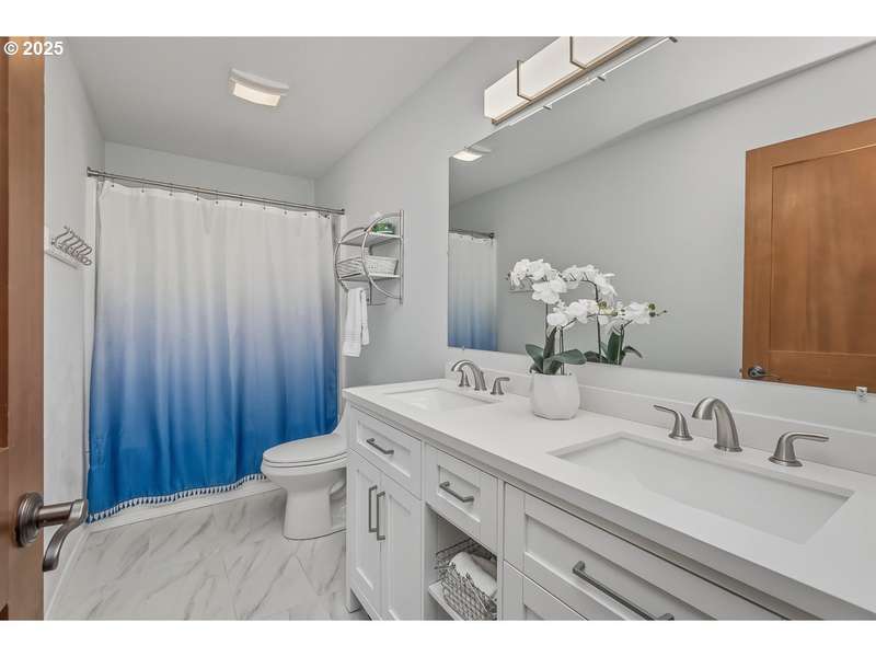 Stunning updated home on private/quiet lot just outside Murrayhill. Fantastic outdoor living with a spacious outdoor patio, garden area and sport court. Backs/sides to private greenbelt. Gourmet kitchen includes custom cabinets, new dishwasher and refrigerator, new hardwood bamboo flooring and ample counter space/storage. Primary bathroom has been updated and is stunning! Walk-in shower, free-standing tub and double sink vanity with quartz countertop. Hall bathroom also updated. Furnace is less than 10 years old w/ built in steam humidifier. Roof/gutters 2023. Great schools including Nancy Ryles and Mountainside HS. The best value in move-in-ready condition in the Murrayhill/Mountainside area. It is amazing inside and out!