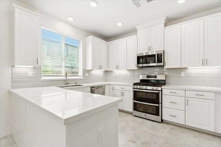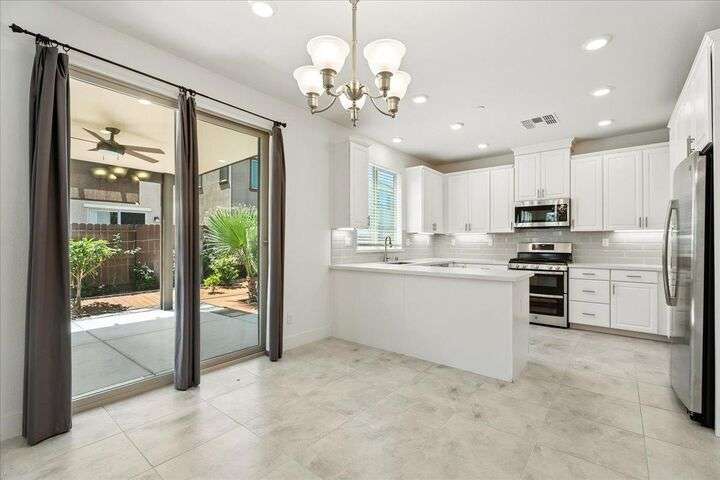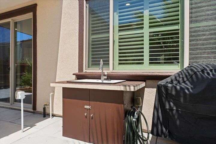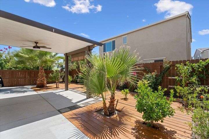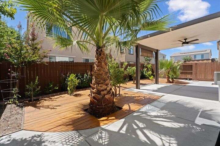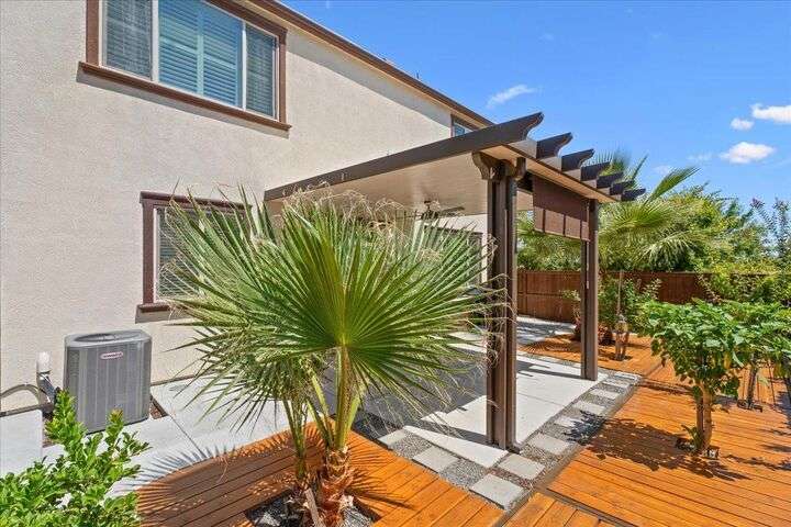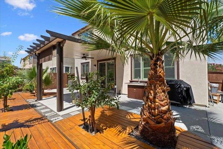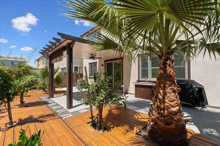 Nestled in a prime Natomas location, this beautiful home built in 2018 is sure to impress. The open concept living room flows effortlessly into a chef's kitchen, featuring stainless steel appliances and a layout ideal for both cooking and entertaining. Modern finishes, including stone countertops throughout, add a touch of luxury to each space. You'll also find custom shutters on every window, combining style with light control and privacy. Additional features include a convenient upstairs laundry room, a spacious master suite with a large walk-in closet and dual sinks for added comfort. Step outside into your private backyard oasis, complete with a gorgeous outdoor pergola and ceiling fan. The concrete patio, custom sink, and plumbed gas line for your BBQ grill make outdoor entertaining a breeze. Enjoy an abundance of fruit trees, including apples, plums, guavas, and oranges, as well as fresh produce from your own vegetable gardens. Located just minutes from the freeway, airport, shopping, and walking/biking trails, this home offers both luxury and convenience. Don't miss out on the chance to make this gorgeous home yours!