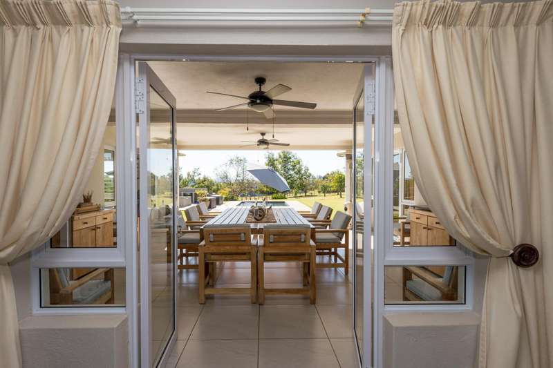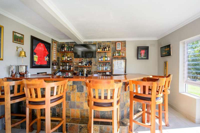 The ground floor hosts a cozy undercover patio, while the upper level boasts a generously sized covered balcony?Çöperfect for enjoying tranquil mornings or evening gatherings. Entertainment is made easy with a pub indoors, and an outdoor fire pit and braai area that overlooks the inviting swimming pool. The property includes a spacious lawn, perfect for outdoor activities and relaxation.