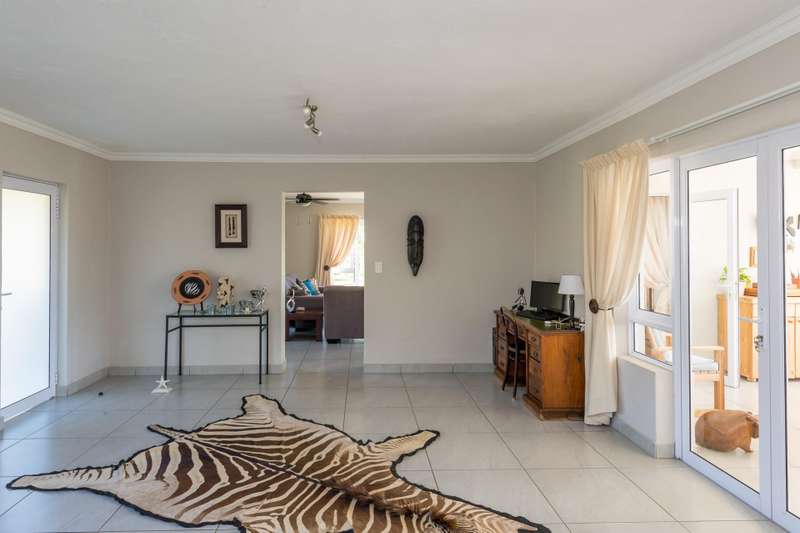 This residence offers 5 large bedrooms and 3 bathrooms, ensuring ample space for family and guests. The kitchen is spacious, featuring abundant counter and cupboard space, with a separate scullery for added convenience. There are lovely lounge and dining areas, both of which have access to the peaceful garden. Upstairs there is a pyjama lounge which provides a great spot for relaxing, or where the kids can play and entertain their friends.