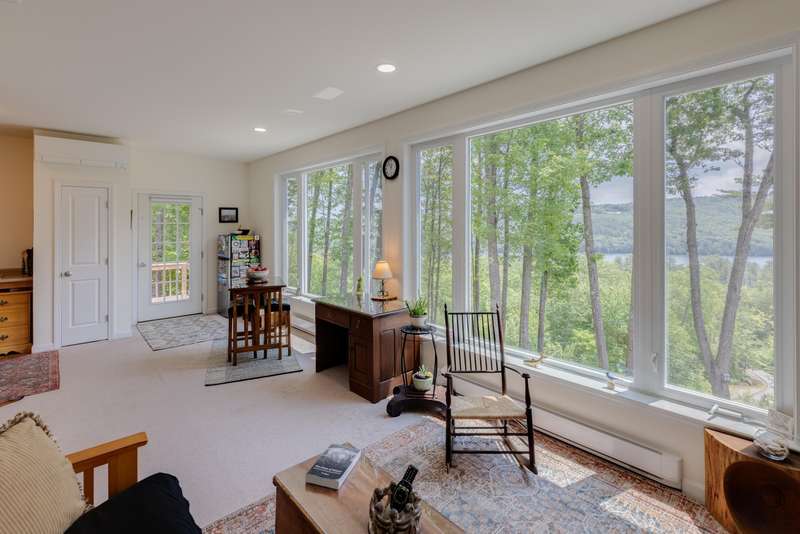 “Whitetail Woods” sits peacefully on 43 acres with expansive views of Little Squam Lake. Built in 2018, this home offers single-level living and a bonus attached one-bedroom apartment perfect for guests. All three bedrooms are suites with private bathrooms, offering a variety of living options. Large windows and high ceilings allow the sun to pour into the large living area, and the views of the Lake and Mountains behind never get old. Have your morning coffee in the attached screened room with a view. A large walk-out level basement offers storage space and a wood shop for tinkering on projects. The whole-house generator provides peace of mind, and mini splits offer AC cooling. Forty-three total acres on two abutting lots provide ample room for privacy and nature observation. Close to downtown Holderness and all Squam activities. Whitetail Woods makes a perfect primary or vacation home in the heart of NH. Call today to see this stunning property!