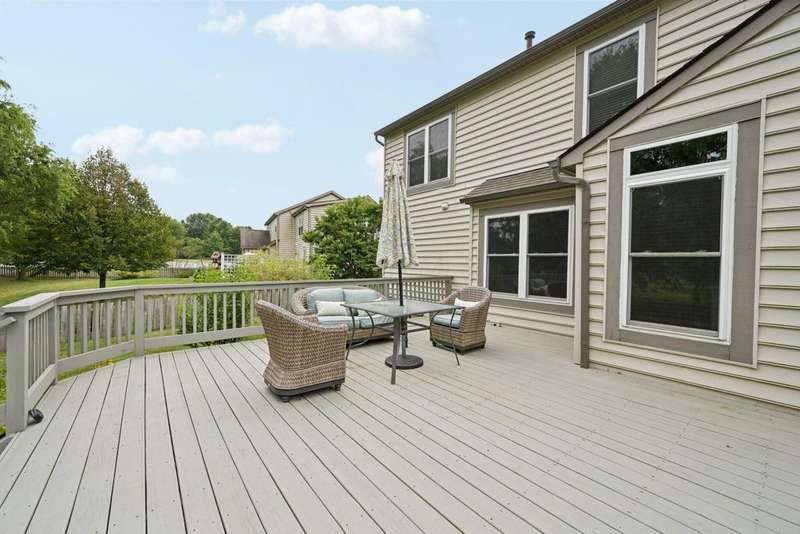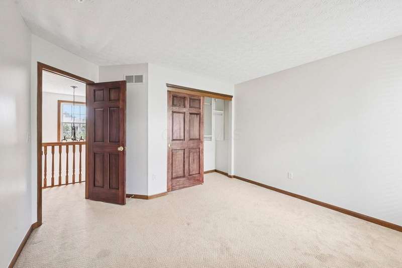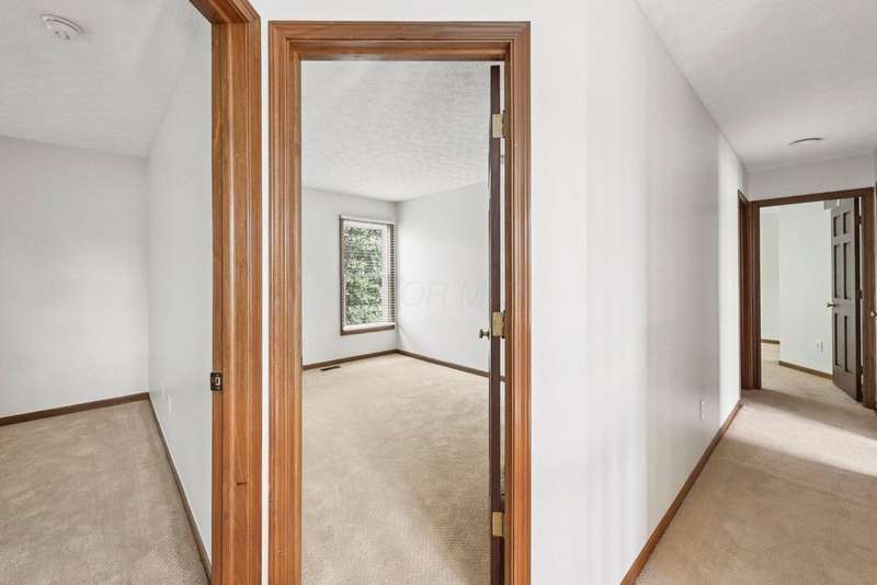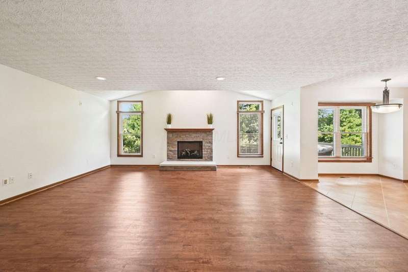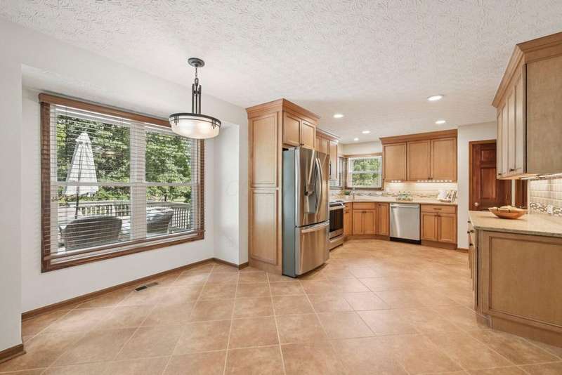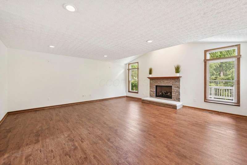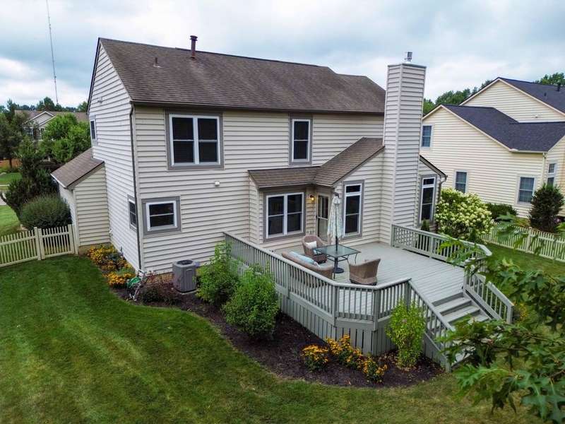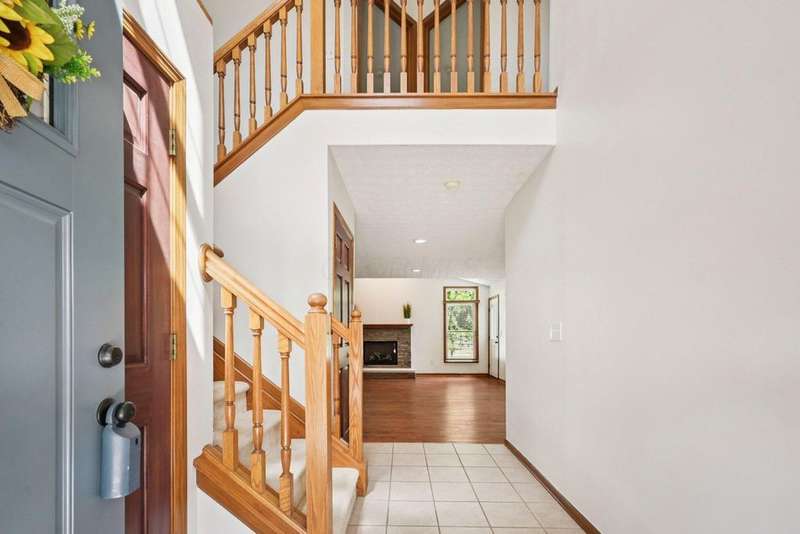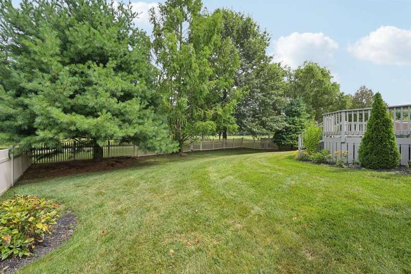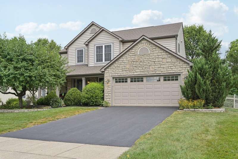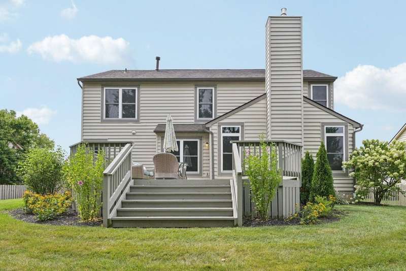 This beautifully updated home offering a freshly painted interior is nestled on a large, fenced yard backing to Freeman Park, a 6+ acre park in Genoa Township within the desirable golf community of in Highland Lakes! The charming covered porch begins your experience of this wonderful residence. The main level offers a large great room highlighted by with a custom surround, a flexible bonus room/den, plus a gorgeous, updated kitchen featuring warm wood cabinetry, stainless steel appliances (including an induction range), tiled backsplash, and generous counter space. The breakfast area overlooks the tree-lined yard and spacious deck.Upstairs you will enjoy the spa-like primary suite inclusive of a walk-in closet designed by California Closets. Three additional bedrooms plus an updated bath. The first-floor laundry adds convenience, and the partial basement offers storage or future finishing potential.Enjoy outdoor living on the expansive deck, surrounded by landscaped grounds with seasonal color. Sidewalk-lined streets make it easy to explore the neighborhood, with Highland Lakes Golf Club amenities available by membership. Conveniently located near Hoover Reservoir, Polaris shopping/dining, and Uptown Westerville.