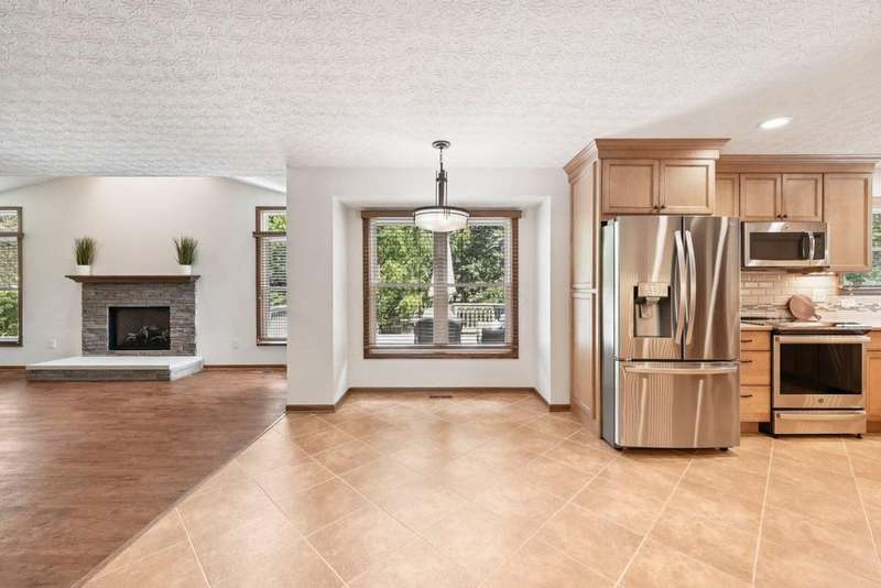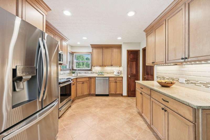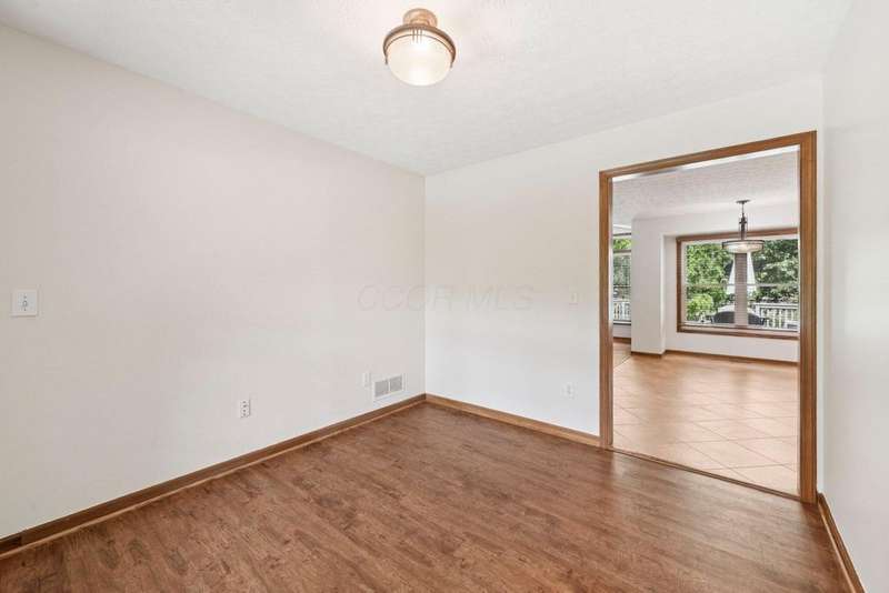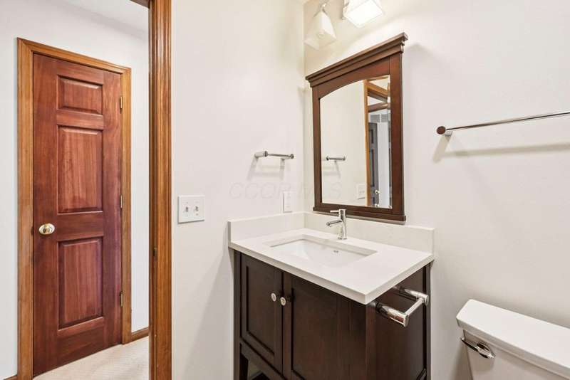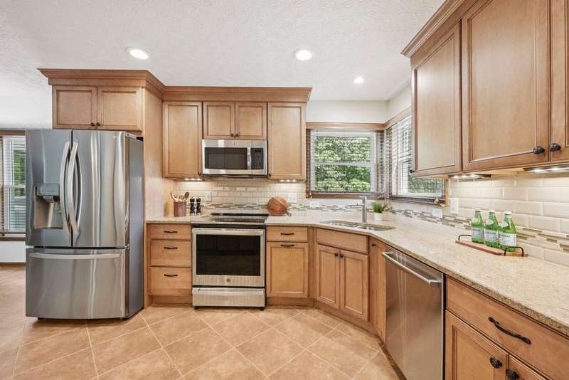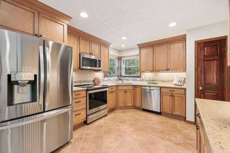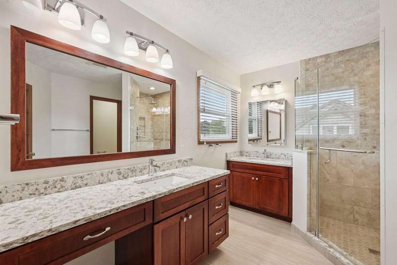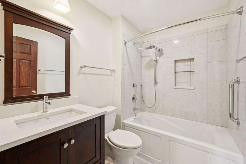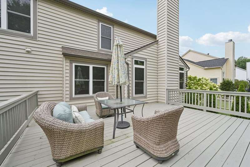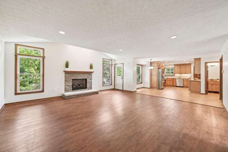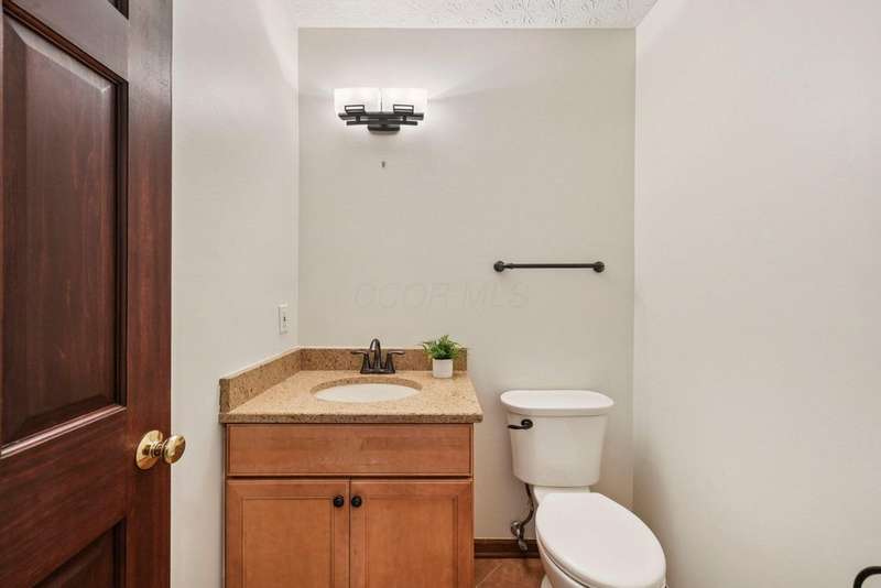 This beautifully updated home offering a freshly painted interior is nestled on a large, fenced yard backing to Freeman Park, a 6+ acre park in Genoa Township within the desirable golf community of in Highland Lakes! The charming covered porch begins your experience of this wonderful residence. The main level offers a large great room highlighted by with a custom surround, a flexible bonus room/den, plus a gorgeous, updated kitchen featuring warm wood cabinetry, stainless steel appliances (including an induction range), tiled backsplash, and generous counter space. The breakfast area overlooks the tree-lined yard and spacious deck.Upstairs you will enjoy the spa-like primary suite inclusive of a walk-in closet designed by California Closets. Three additional bedrooms plus an updated bath. The first-floor laundry adds convenience, and the partial basement offers storage or future finishing potential.Enjoy outdoor living on the expansive deck, surrounded by landscaped grounds with seasonal color. Sidewalk-lined streets make it easy to explore the neighborhood, with Highland Lakes Golf Club amenities available by membership. Conveniently located near Hoover Reservoir, Polaris shopping/dining, and Uptown Westerville.