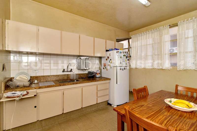 Sala ampla com janela generosa, dividida em 3 ambientes. Copa e cozinha integradas. 3 quartos além de ume suíte espaçosa com closet. 2 quartos de serviço e 2 vagas de garagem paralelas.