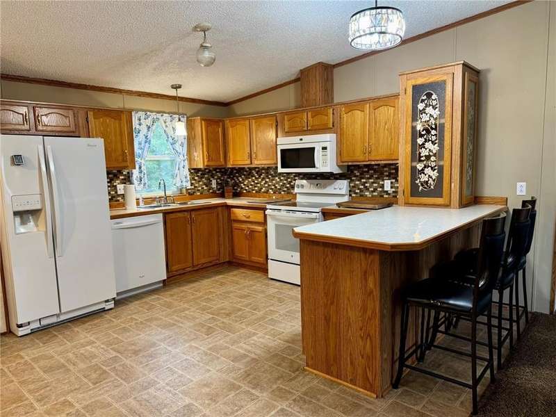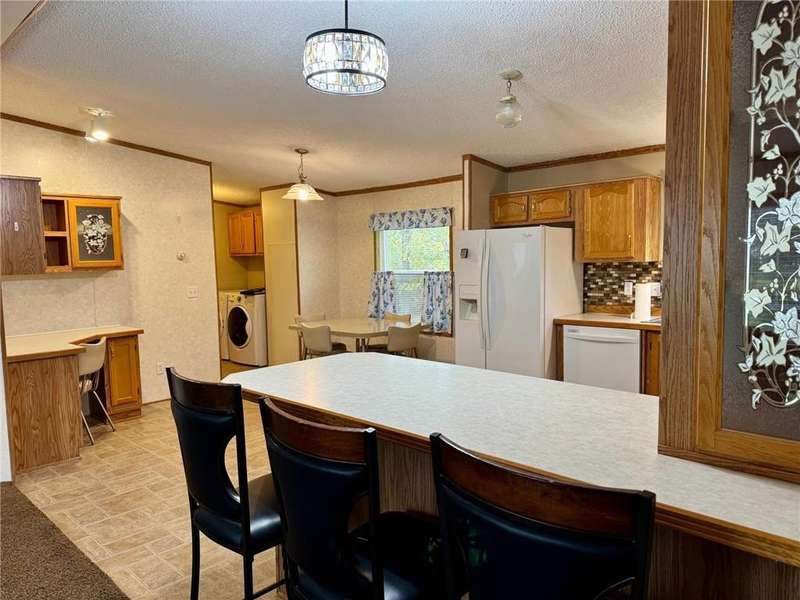 Nice double wide manufactured home on large .61 of an acre lot with 3 bedrooms on one level, main floor laundry, all appliances stay including furniture! Primary bedroom with private full bath with separate shower and tub. Super sized garage is heated and features extra space for a work area! Enter the full basement from the garage which makes this property also a great rental or great guest space. There is a kitchen, dining area, full bathroom, bedroom, large living area and laundry hook up. Available for a quick closing!!