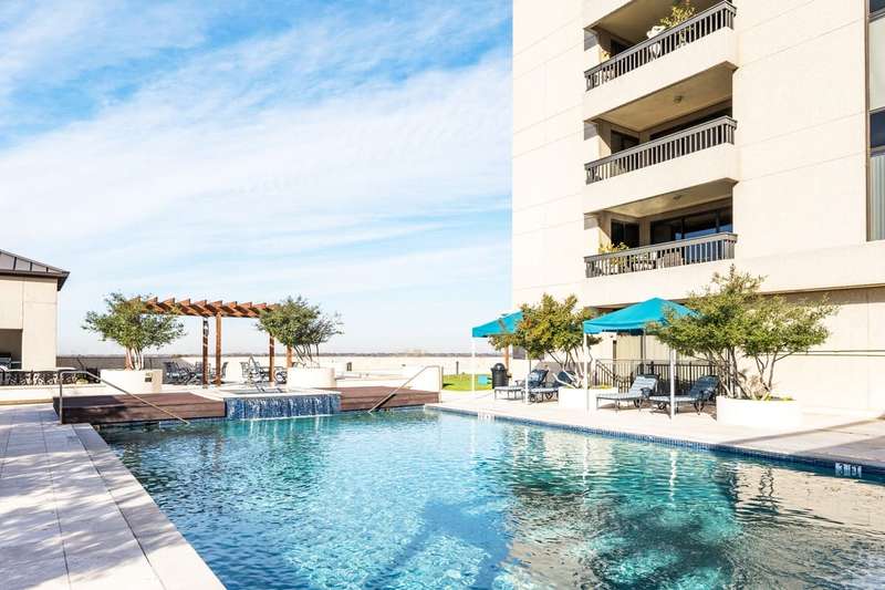 LOCK-AND-LEAVE LUXURY IN HPISD!This 20th-floor residence offers gorgeous views of Preston Hollow and exceptional natural light throughout. Featuring wood floors, marble bathrooms, and generous living and entertaining spaces, including a flexible third roomperfect as an office, den, or guest suite. Enjoy 2 private balconies and 3 dedicated parking spacesa rare and valuable amenity. Resort-style living with a 24-hour front desk, fitness center, pool with cabanas, club room, valet, putting green, pet relief area, and moreall in an unbeatable location. Move-in ready and great price! Schedule your private tour with Juli Black and discover the ease of refined high-rise luxury living at The Shelton, 5909 Luther Lane.